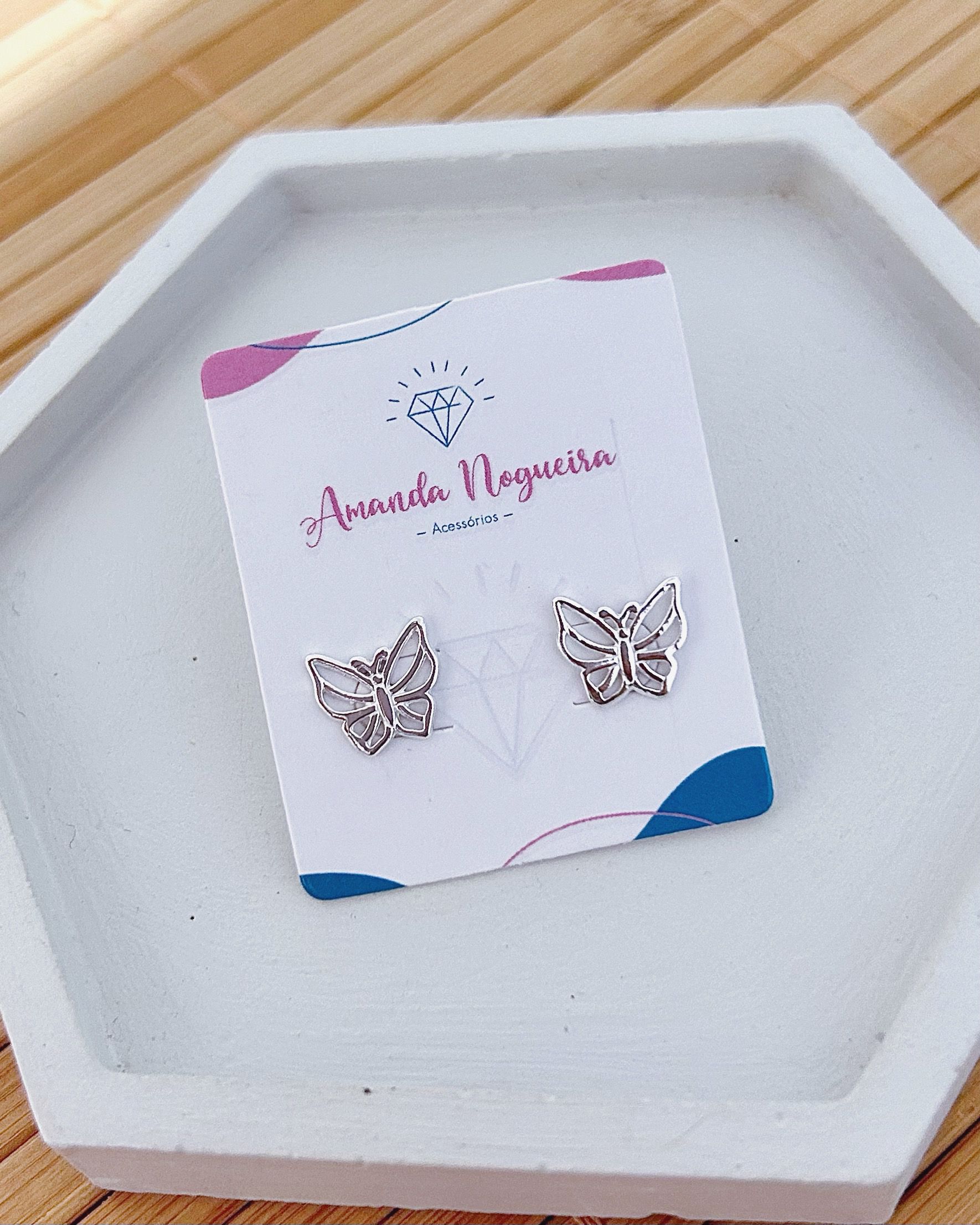 Brinco de Prata Borboleta Vazada 1cm x 0,9cm