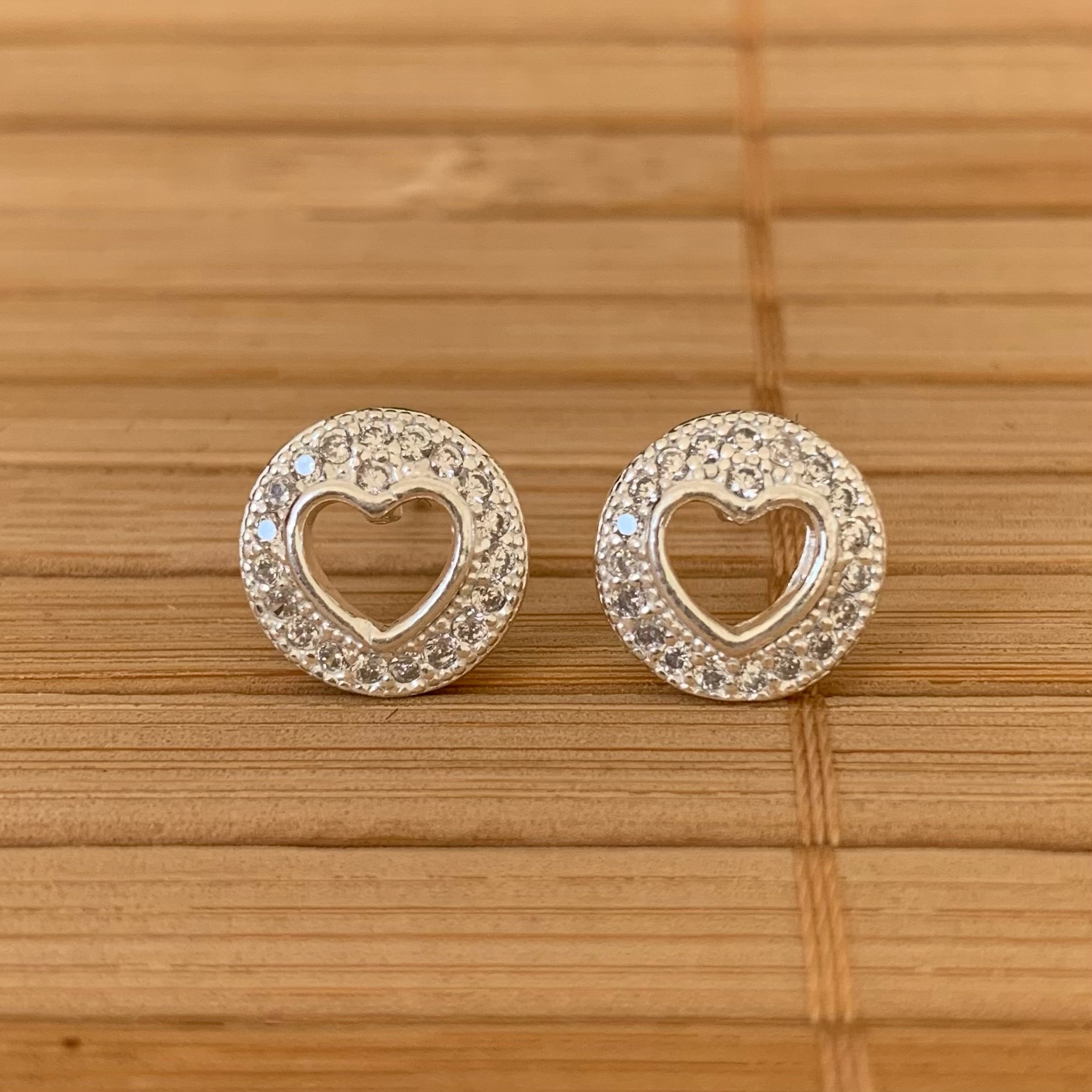 Brinco Circulo Cravejado c/ Coração Vazado - Prata 925