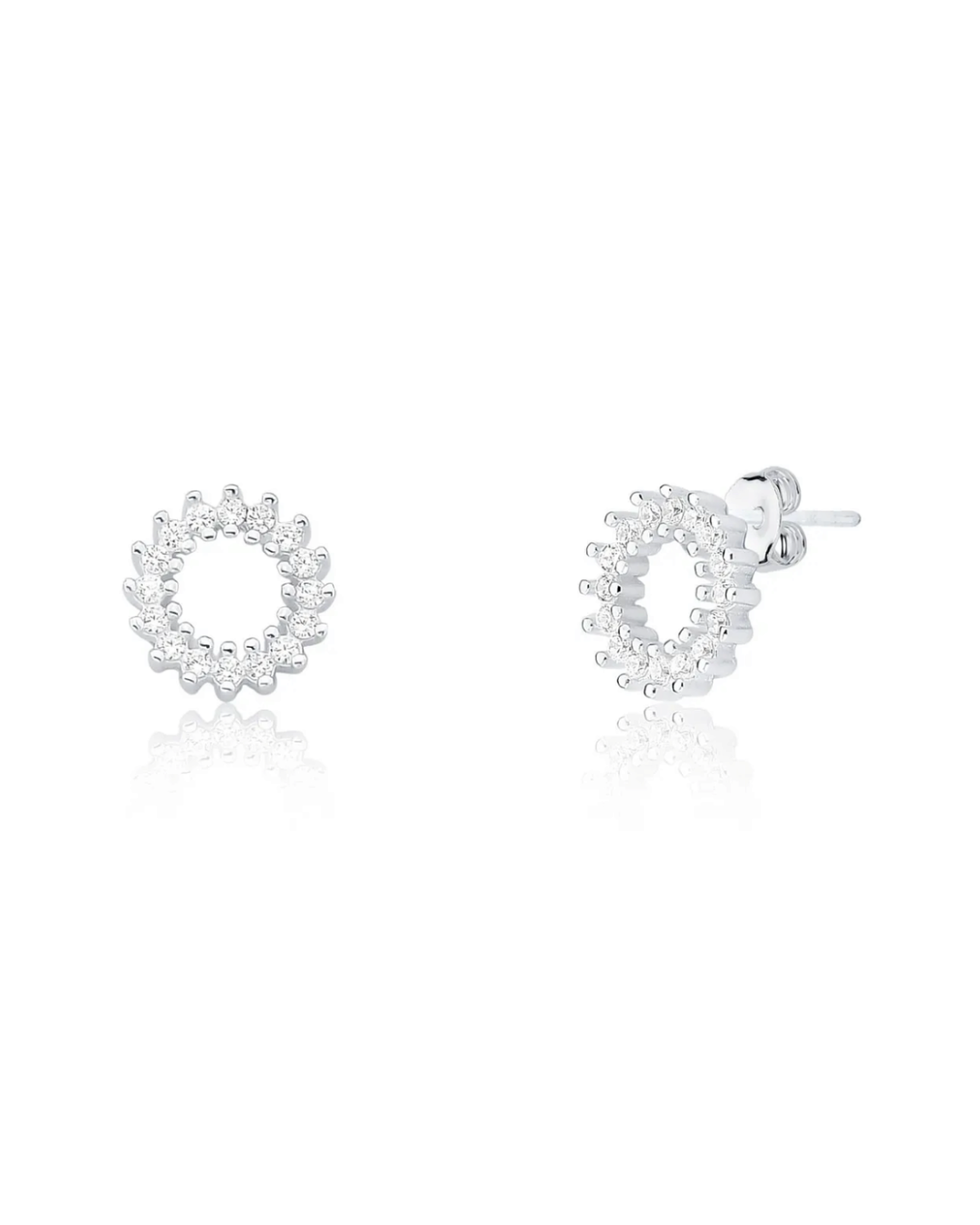 Brinco Círculo Vazado Cravejado 1,2cm - Prata 925