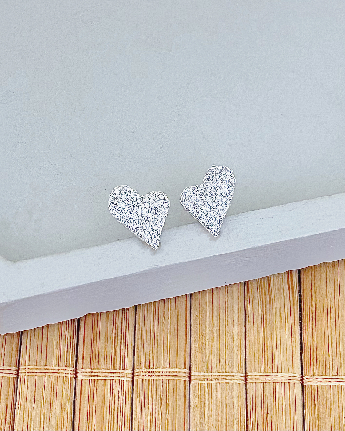 Brinco em Prata 925 Coração Torto Inteiro Cravejado com Zircônias Cristal!