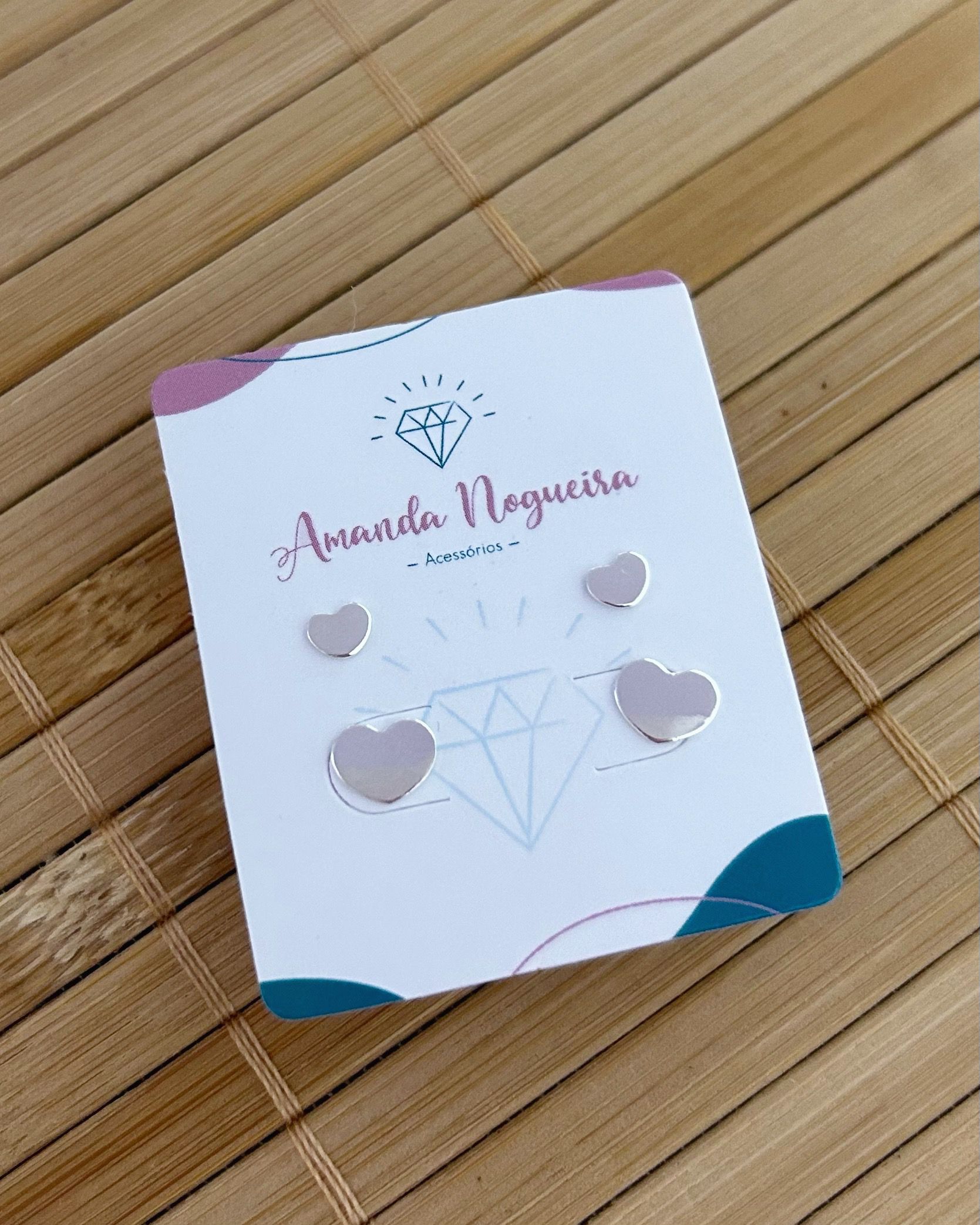 Brinco Duo Coração Fofo Pequeno e Medio - Prata 925