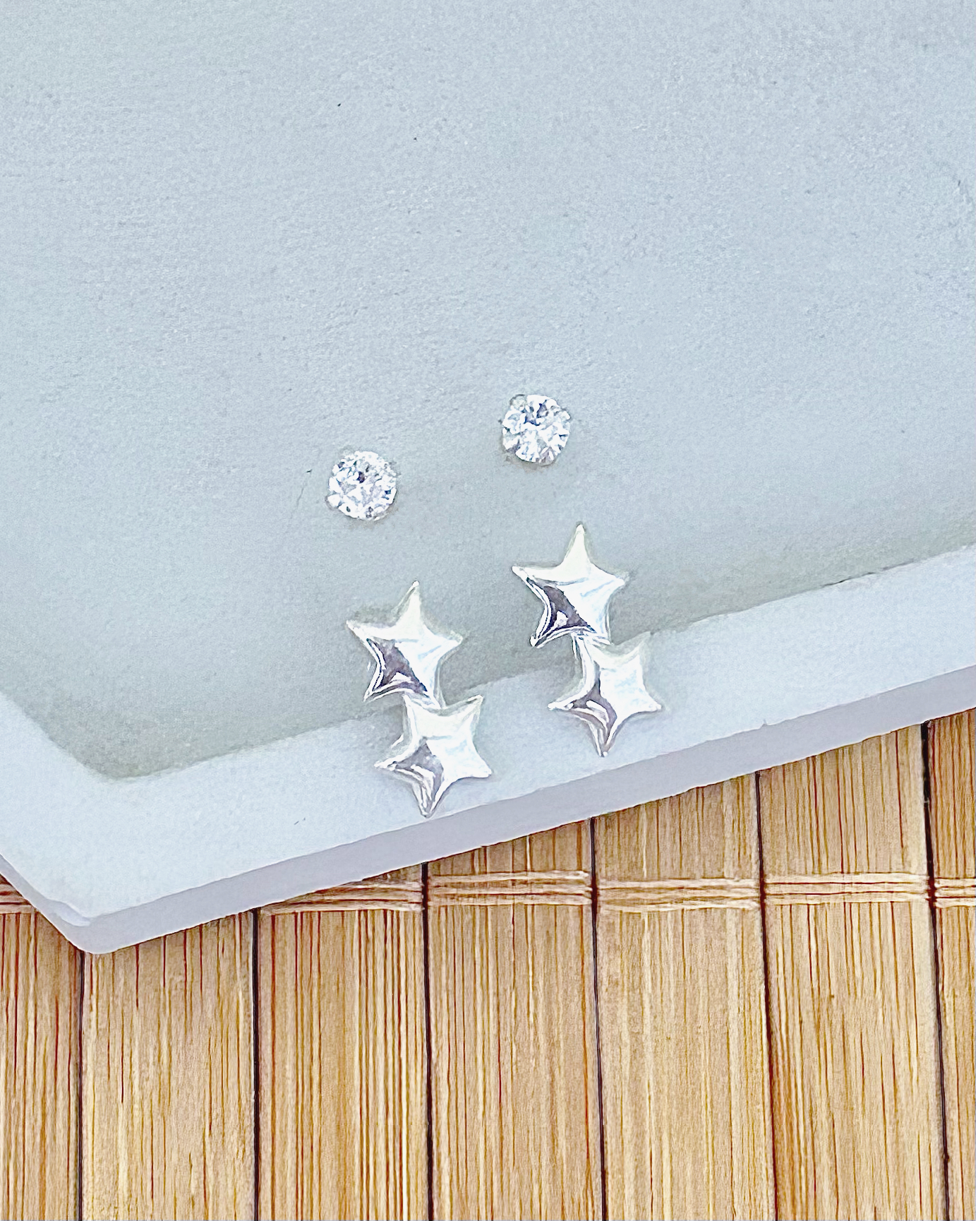 Brinco de Prata Duo Ponto de Luz e Estrela Dupla