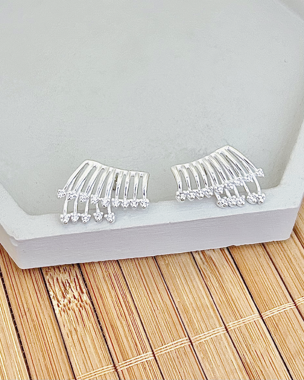 Brinco em Prata 925 Ear Cuff Linhas com Pontos de Luz nas Pontas Cravejado com Zircônias Cristal!