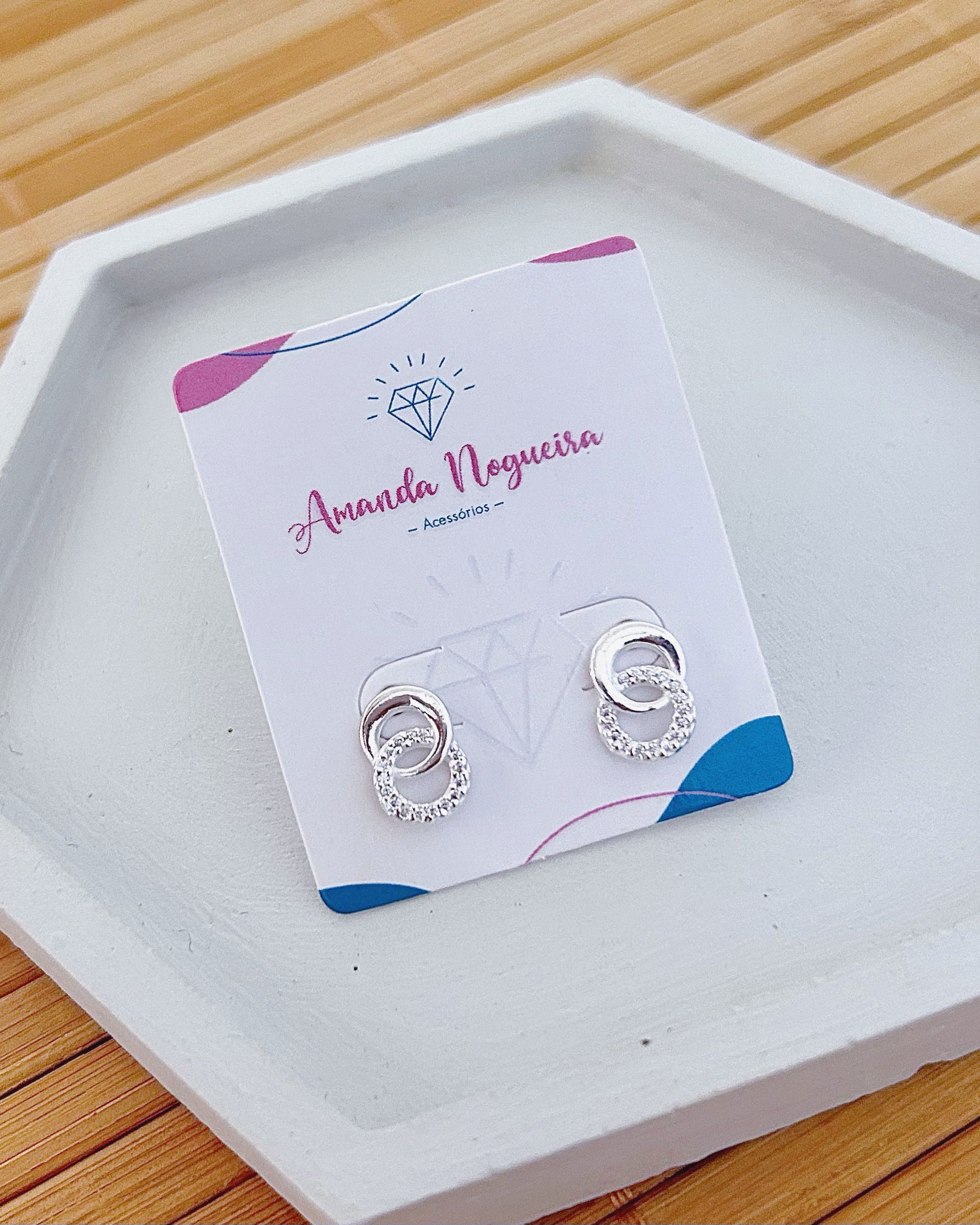 Brinco de Prata Elos Vazados 1 Liso e 1 Cravejado 1,1cm