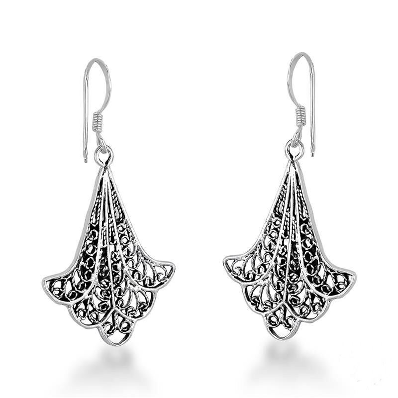 Brinco de Prata Estilo Indiano Envelhecido 4cm x 2,2cm