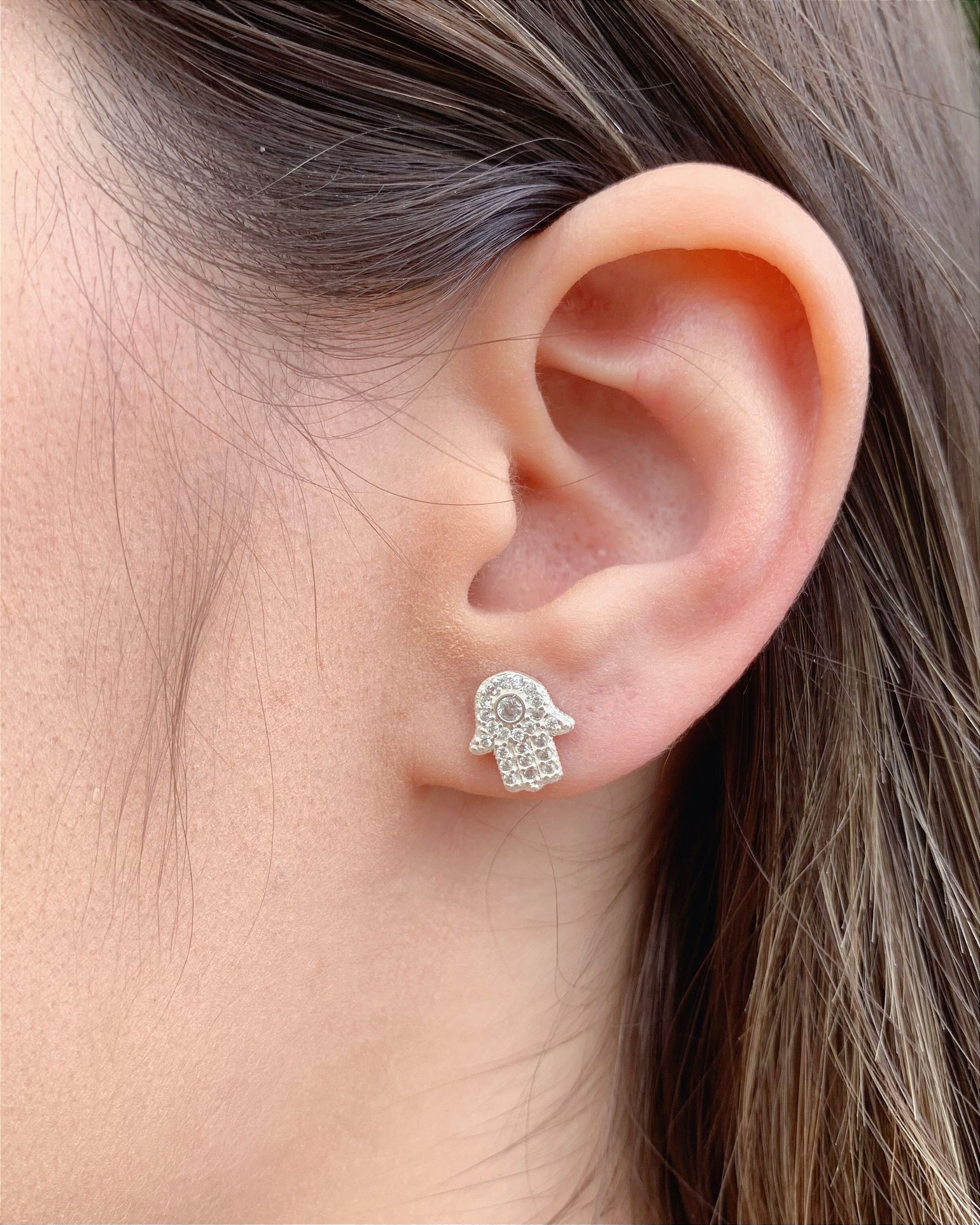 Brinco Mão de Fatima (Hamsa) Cravejada - Prata 925