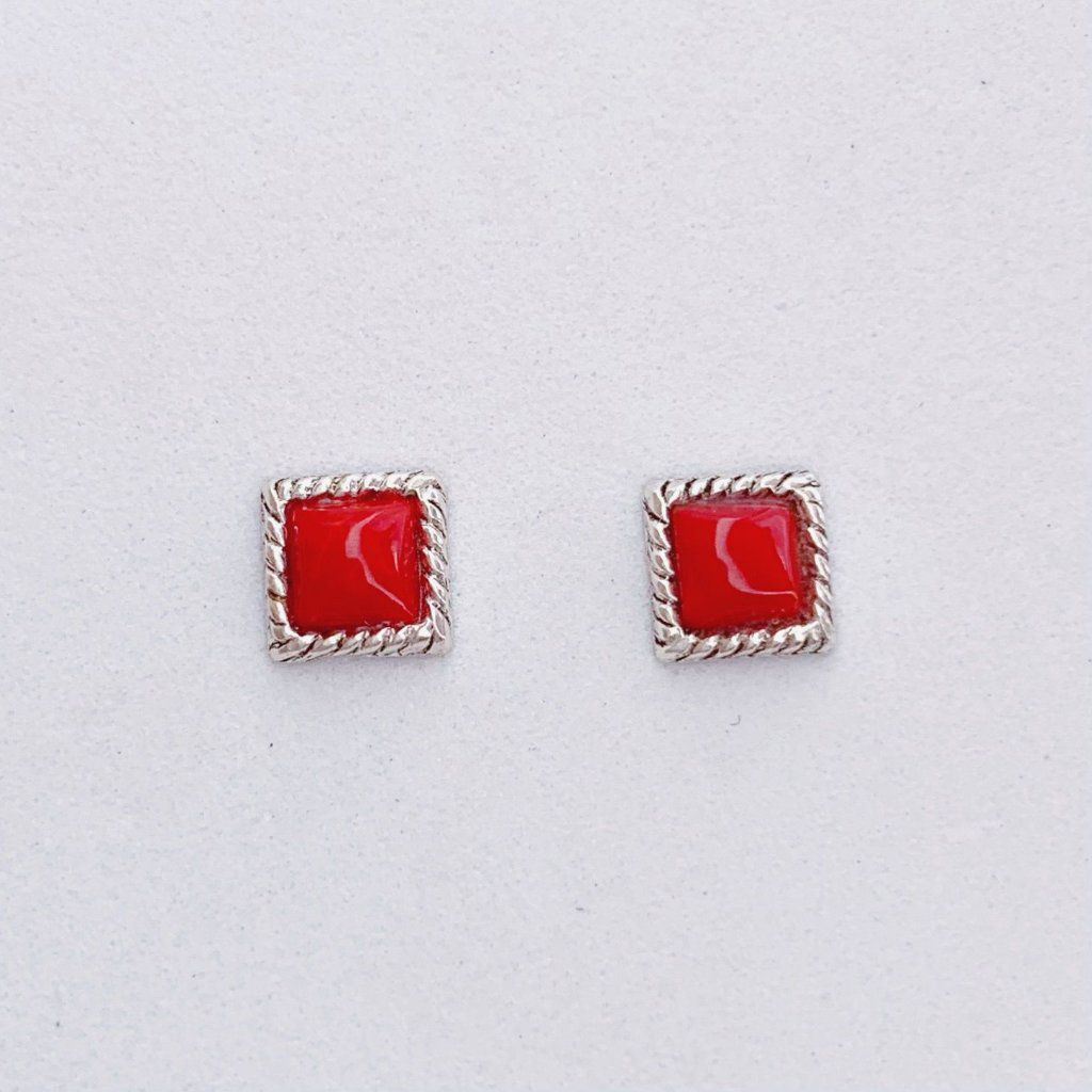 Brinco de Prata Quadrado Vermelho 0,6cm