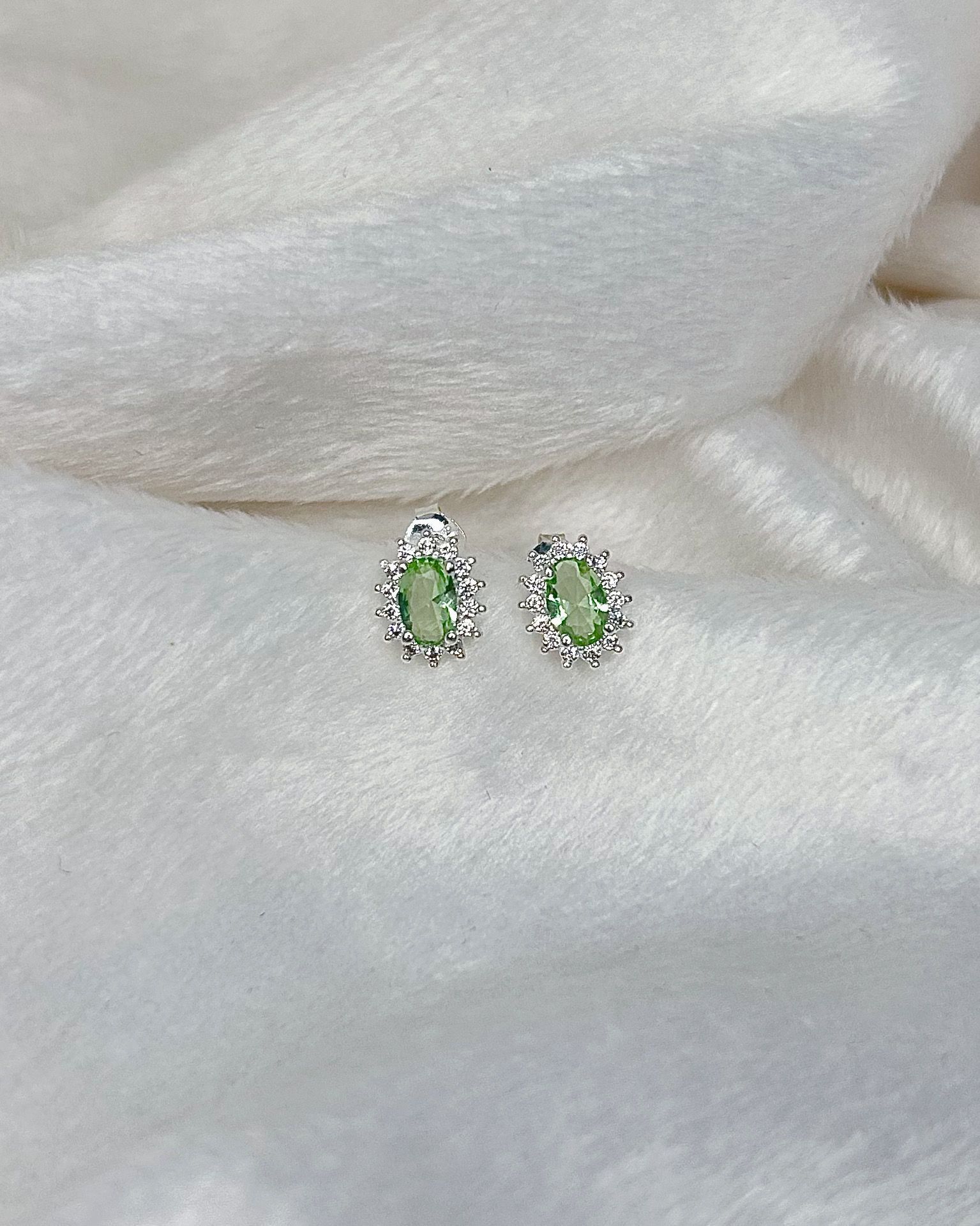 Brinco de Prata Zircônia Oval Verde Cravejada 1cm