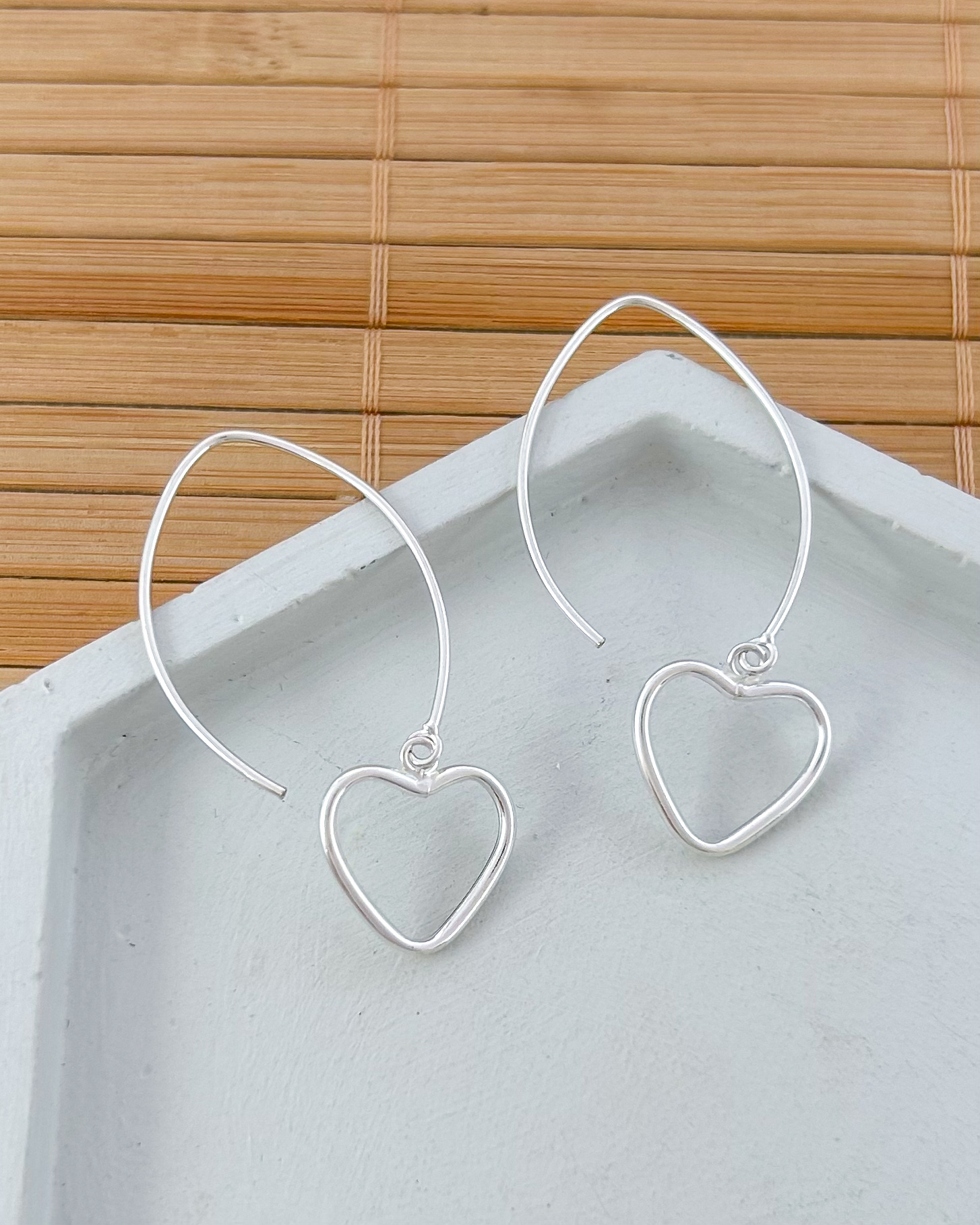 Brinco em Prata 925 Gancho com Pingente em Formato de Coração Pendurado!