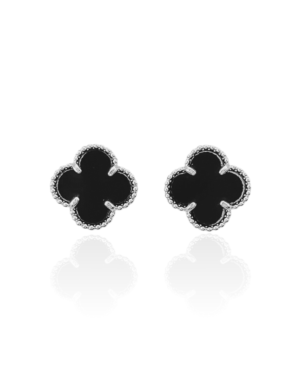 Brinco Trevo Preto - Prata 925