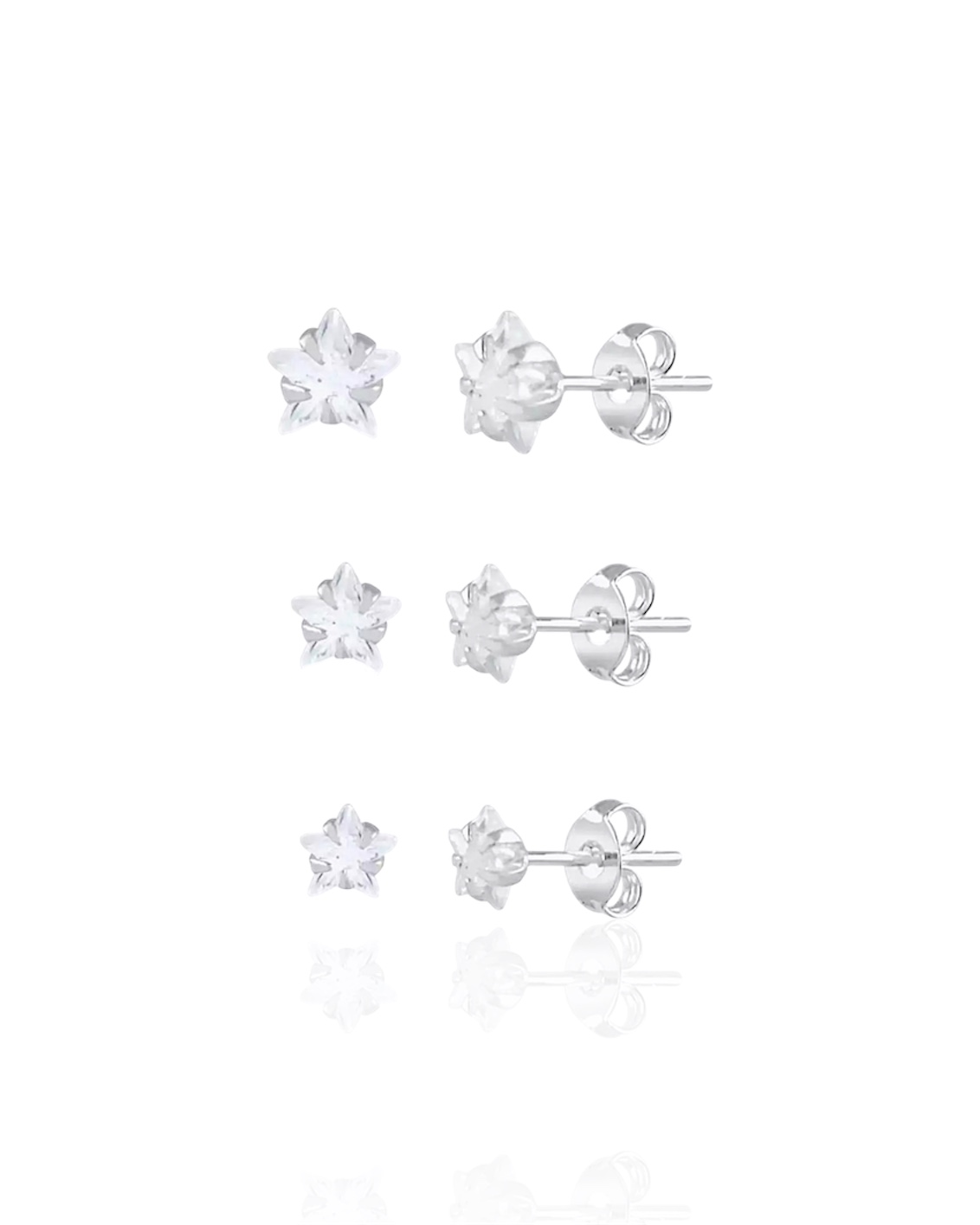 Trio de Brincos em Prata 925 Estrela de Zircônia Cristal com tarraxa!