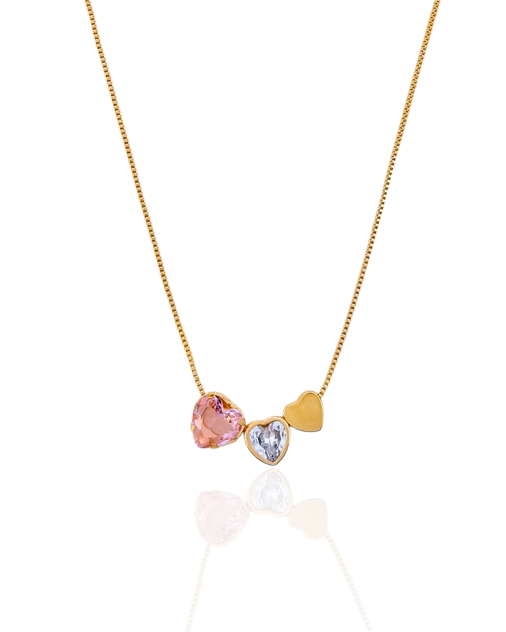 Colar 3 Corações Veneziana 45cm - Banho de Ouro 18k