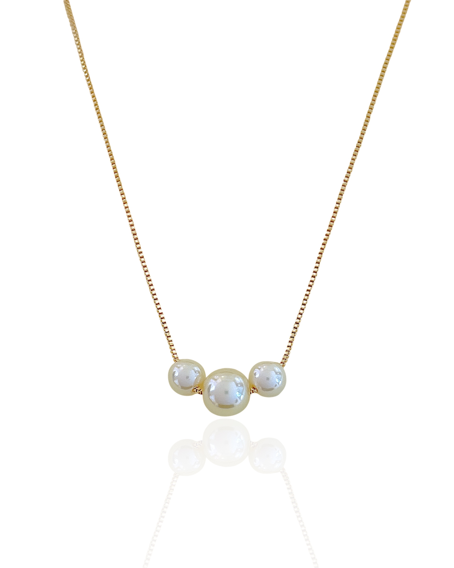Comprimento da Corrente: 45cm + 4cm Espessura da Corrente: 1mm Medida do Pingente: 8mm Fecho: Bóia Material: Metal com Banho de Ouro 18k e Pérola Sintética Cor: Dourado