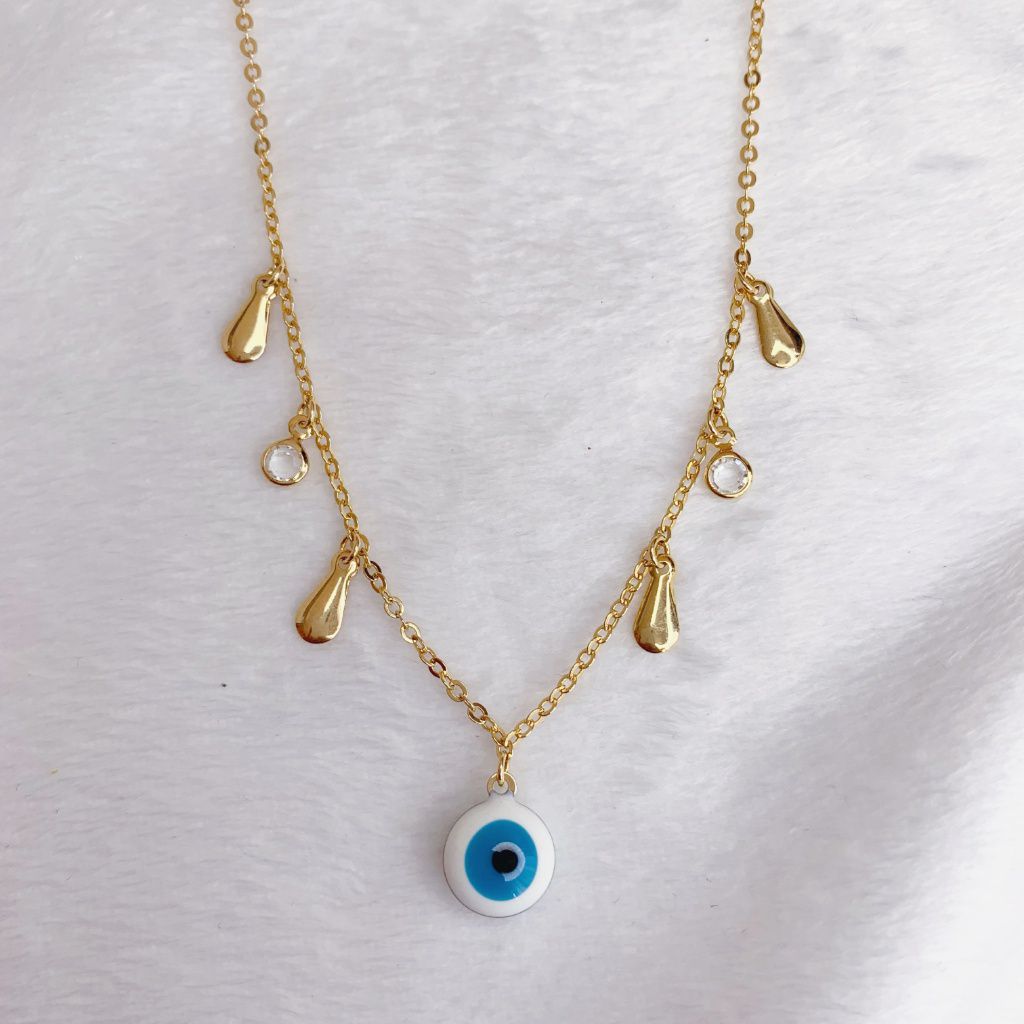 Colar Banhado a Ouro Elo Portugues c/ Olho Grego Grande 45cm