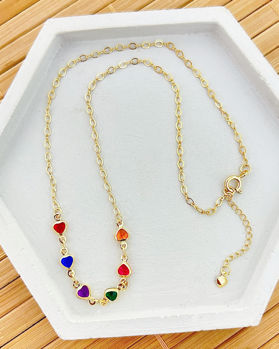 Colar Banhado a Ouro 18k Infantil Elo Infinito e 6 corações coloridos!