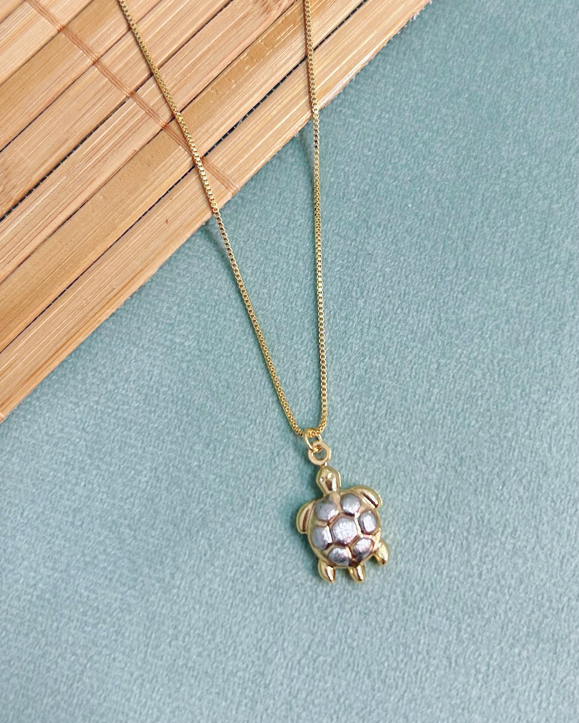 Colar Banhado a Ouro Tartaruga c/ detalhes Prata 2cm x 1,3cm