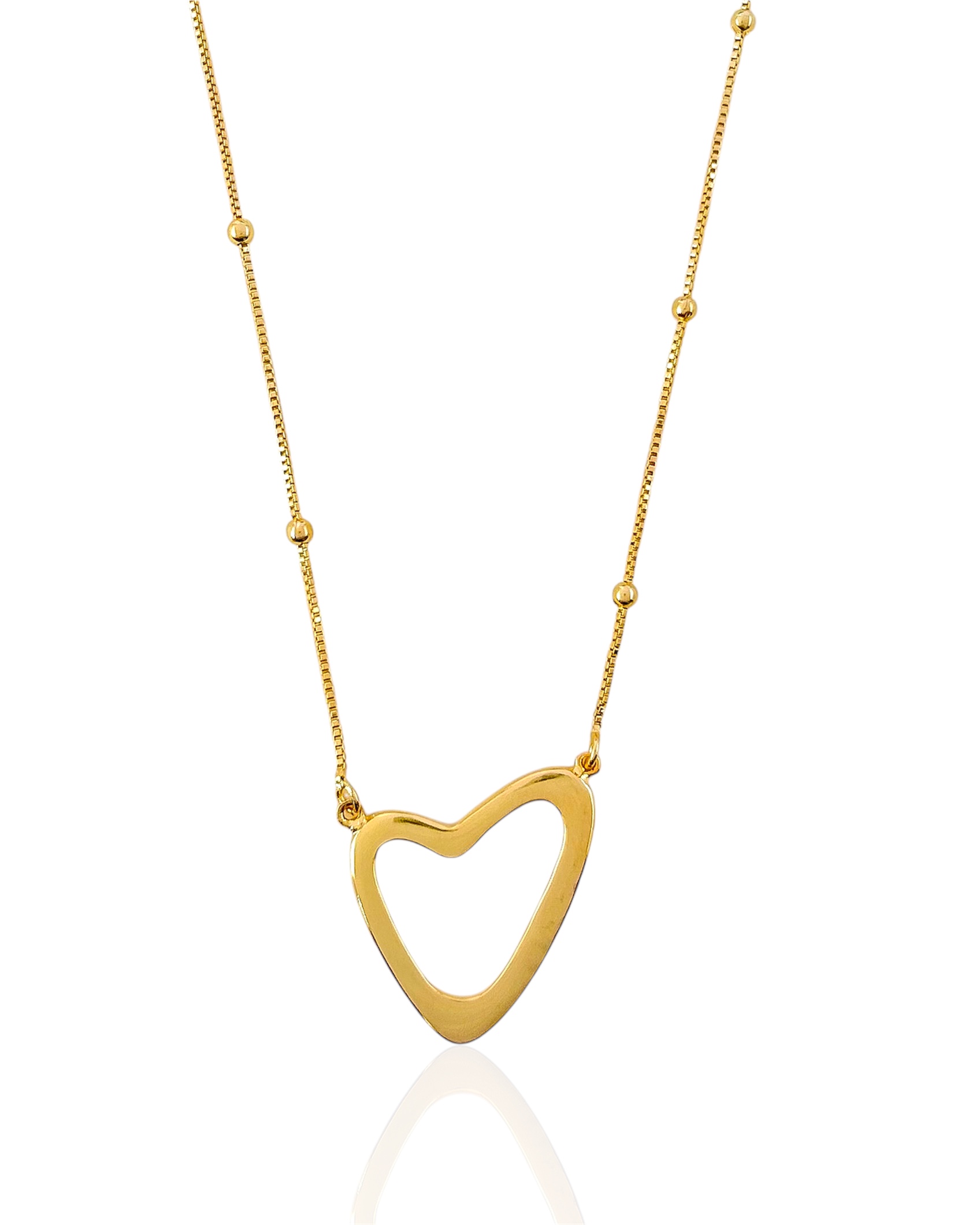 Colar Coração Torto Veneziana com Bolinhas 50cm + 5cm de Extensor - Banho de Ouro 18k