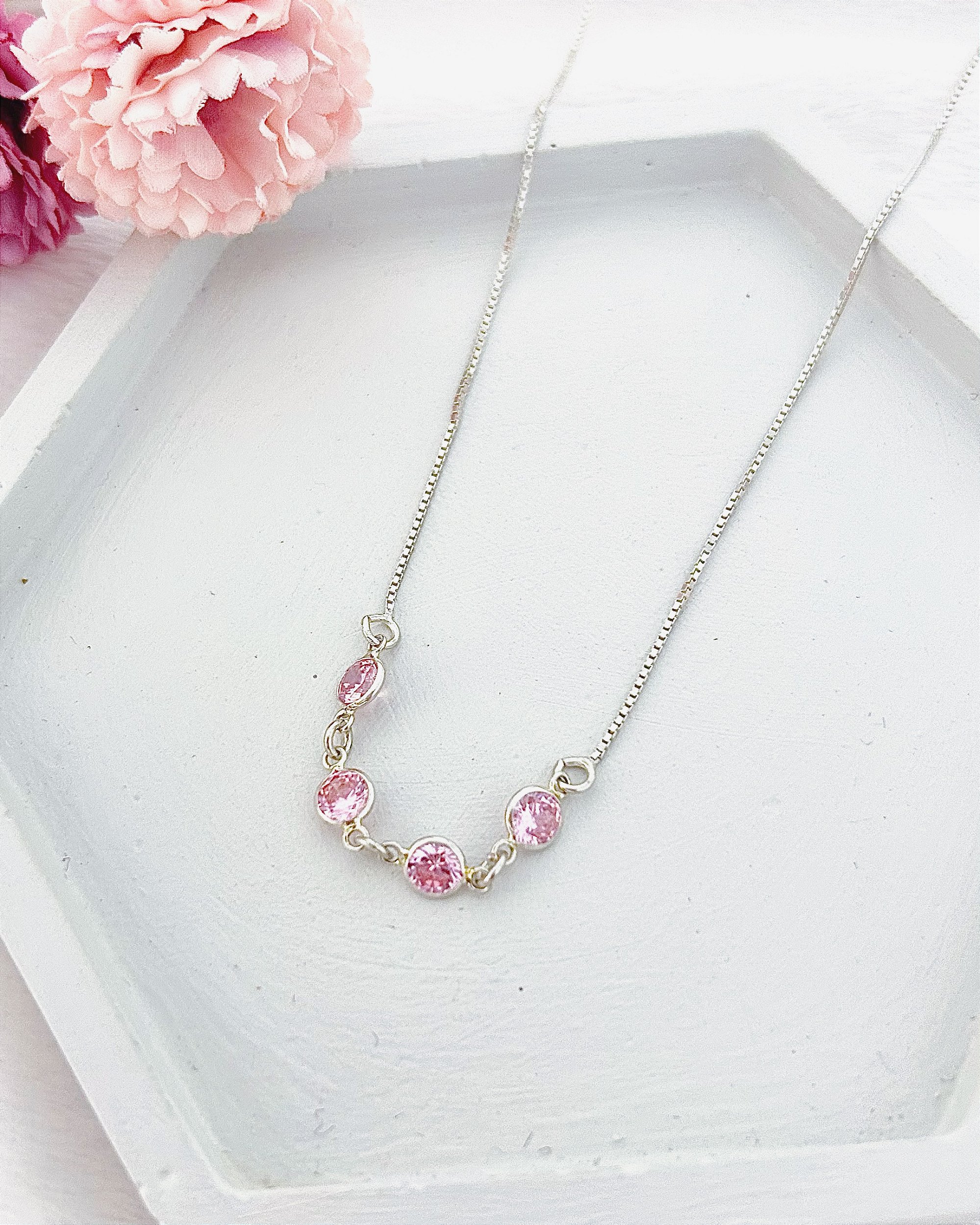 Colar de Prata com 4 Zirconias Rosa 45cm