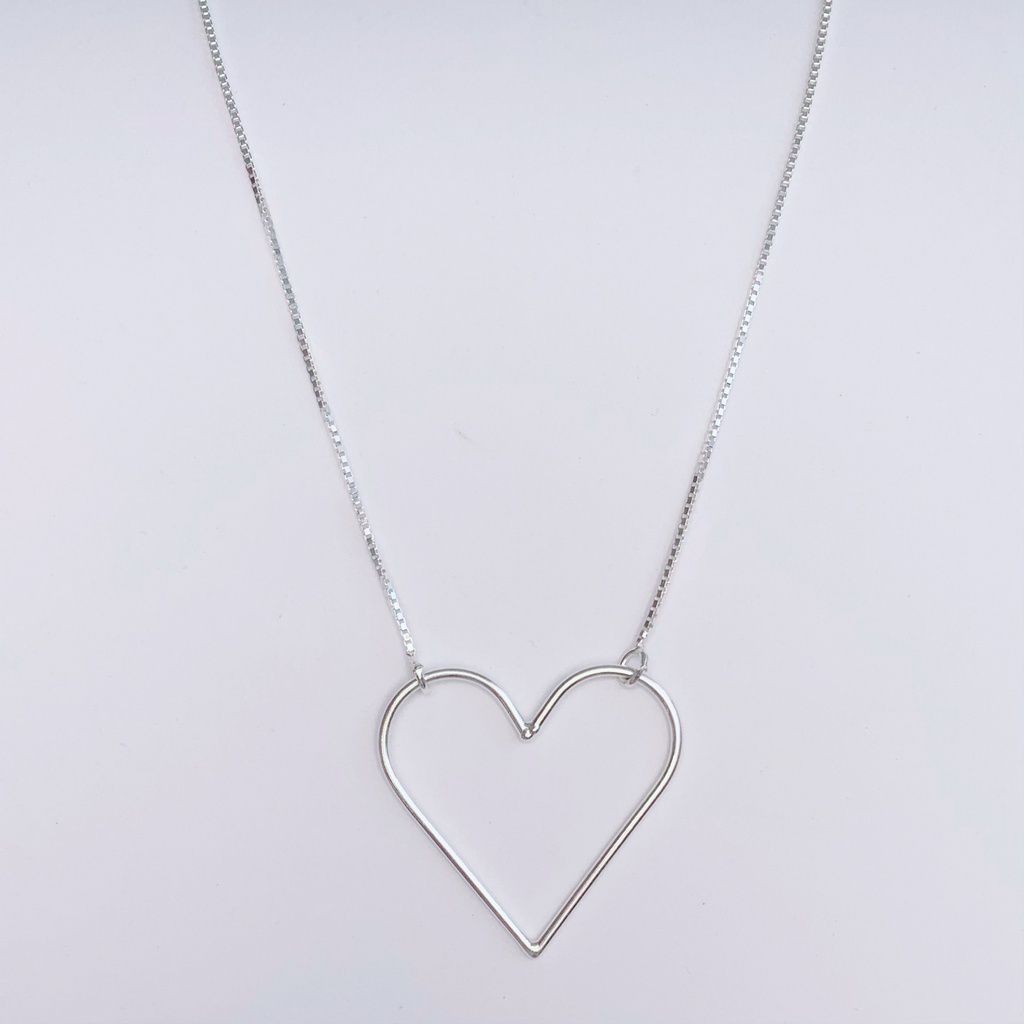 Colar de Prata Coração Grande Vazado Fino 45cm