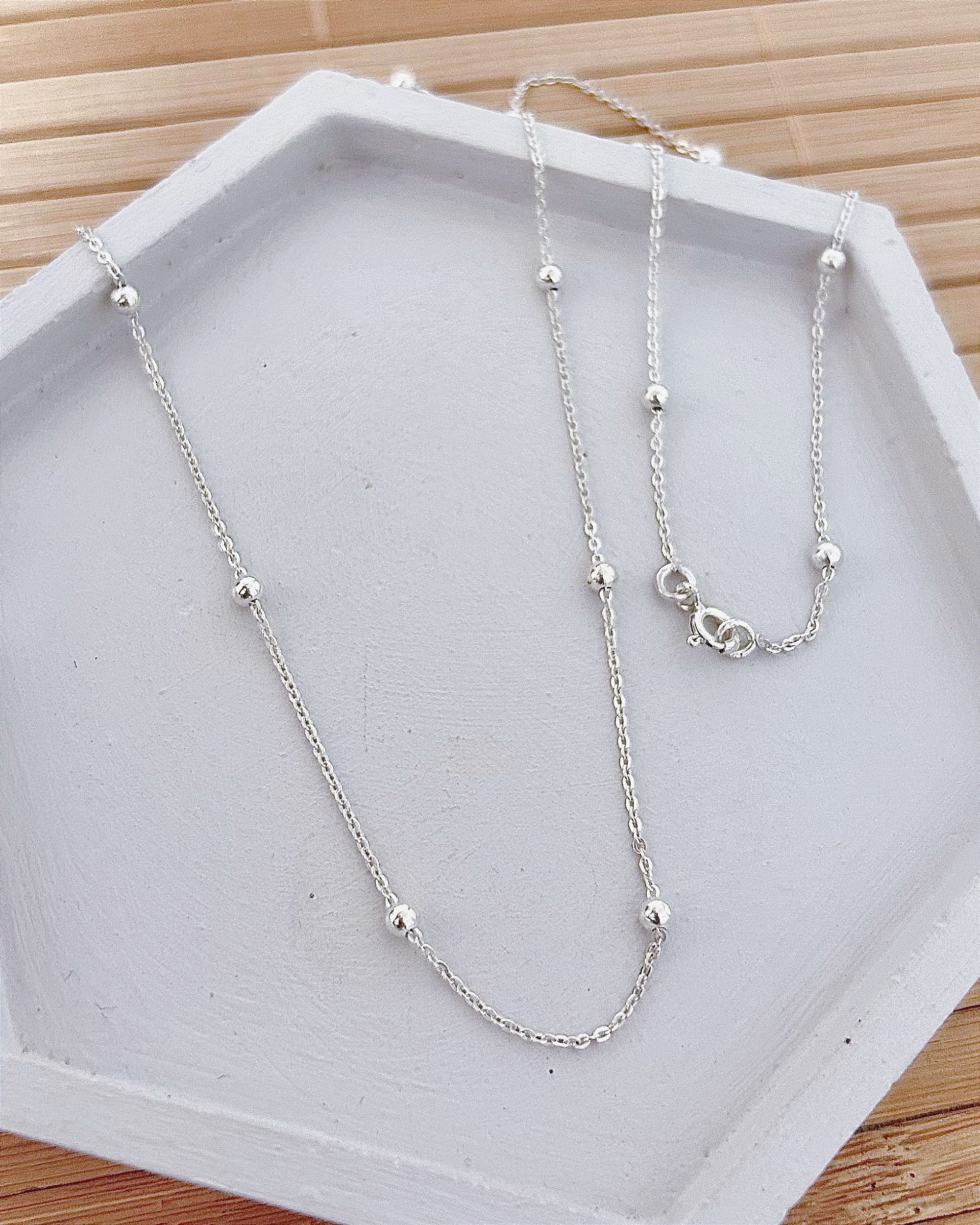 Colar de Prata Elo Português c/ Bolinhas 45cm