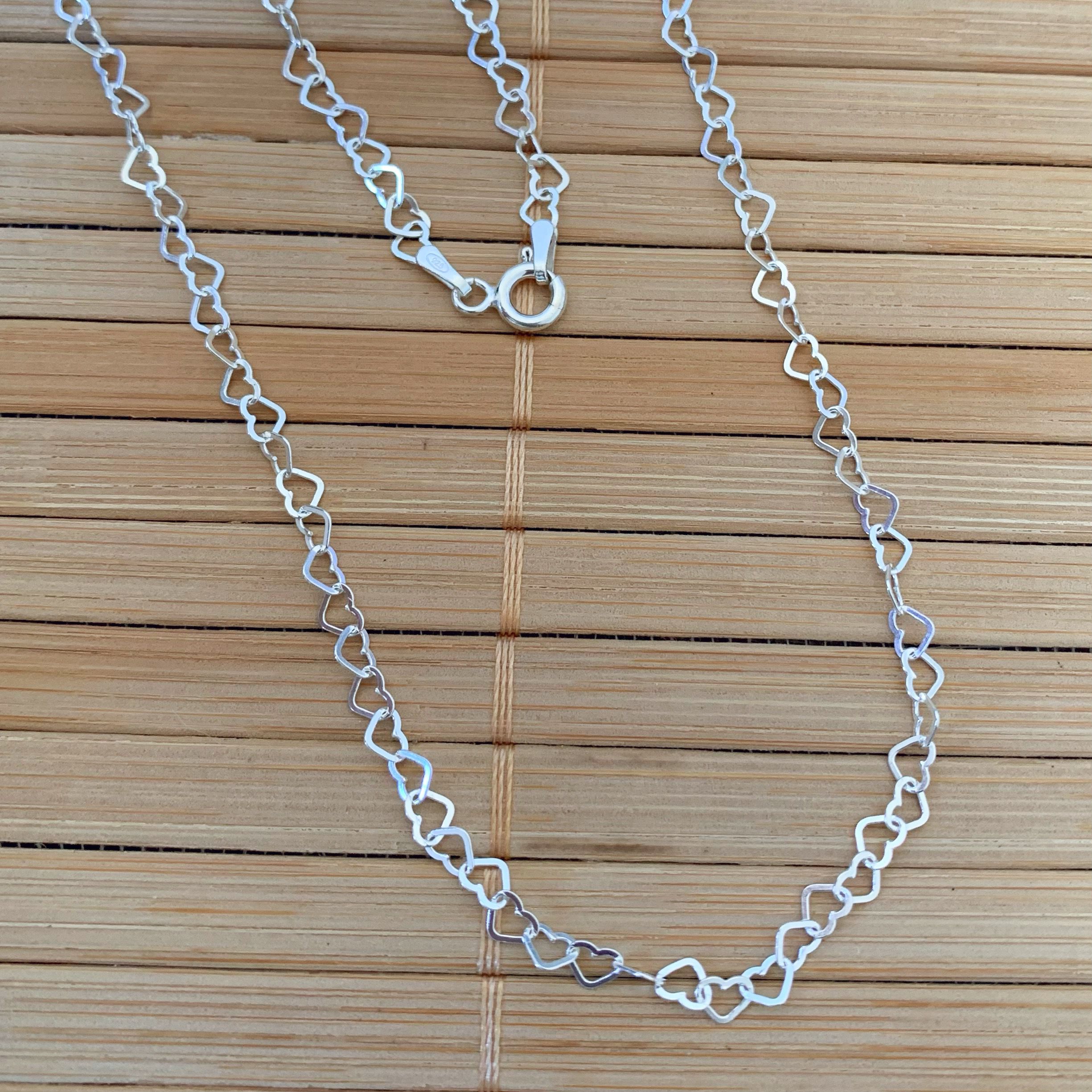 Colar Elos Coração 80cm - Prata 925
