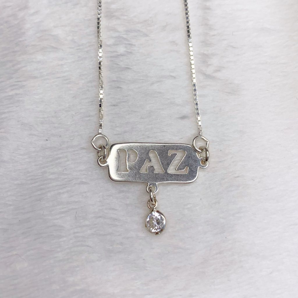 Colar de Prata Plaquinha Paz c/ Ponto de Luz 45cm