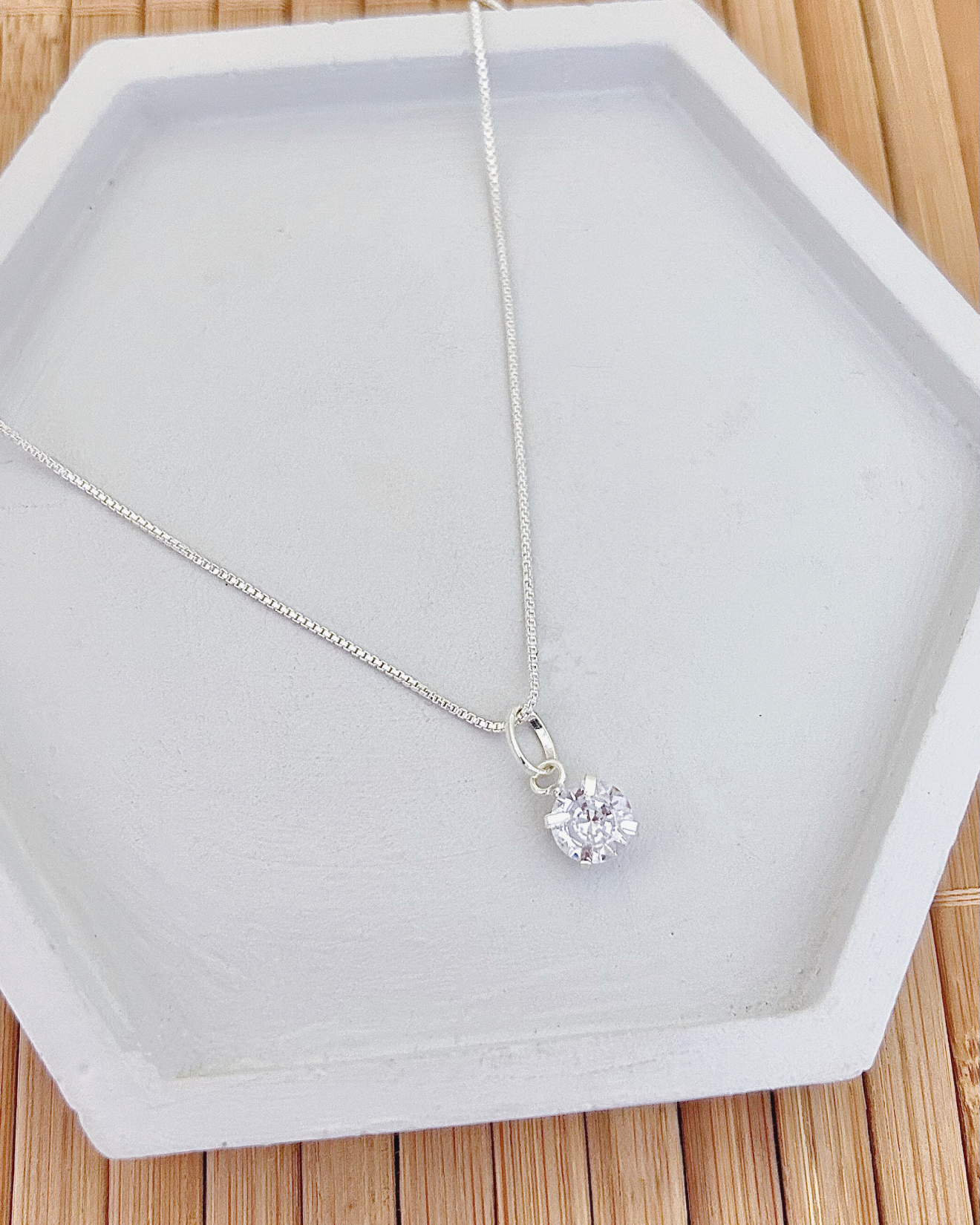 Colar em Prata 925 Corrente Veneziana com Pingente Ponto de luz Zircônia Cristal.