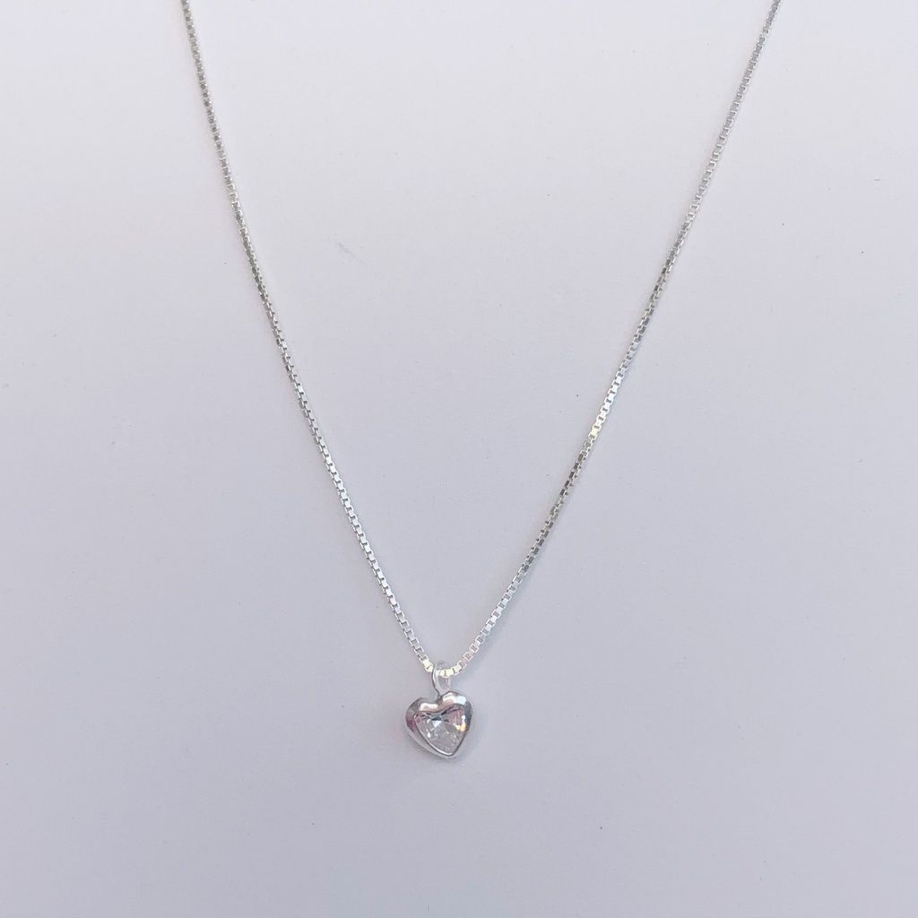Colar de Prata Ponto de Luz Coração Cristal 45cm