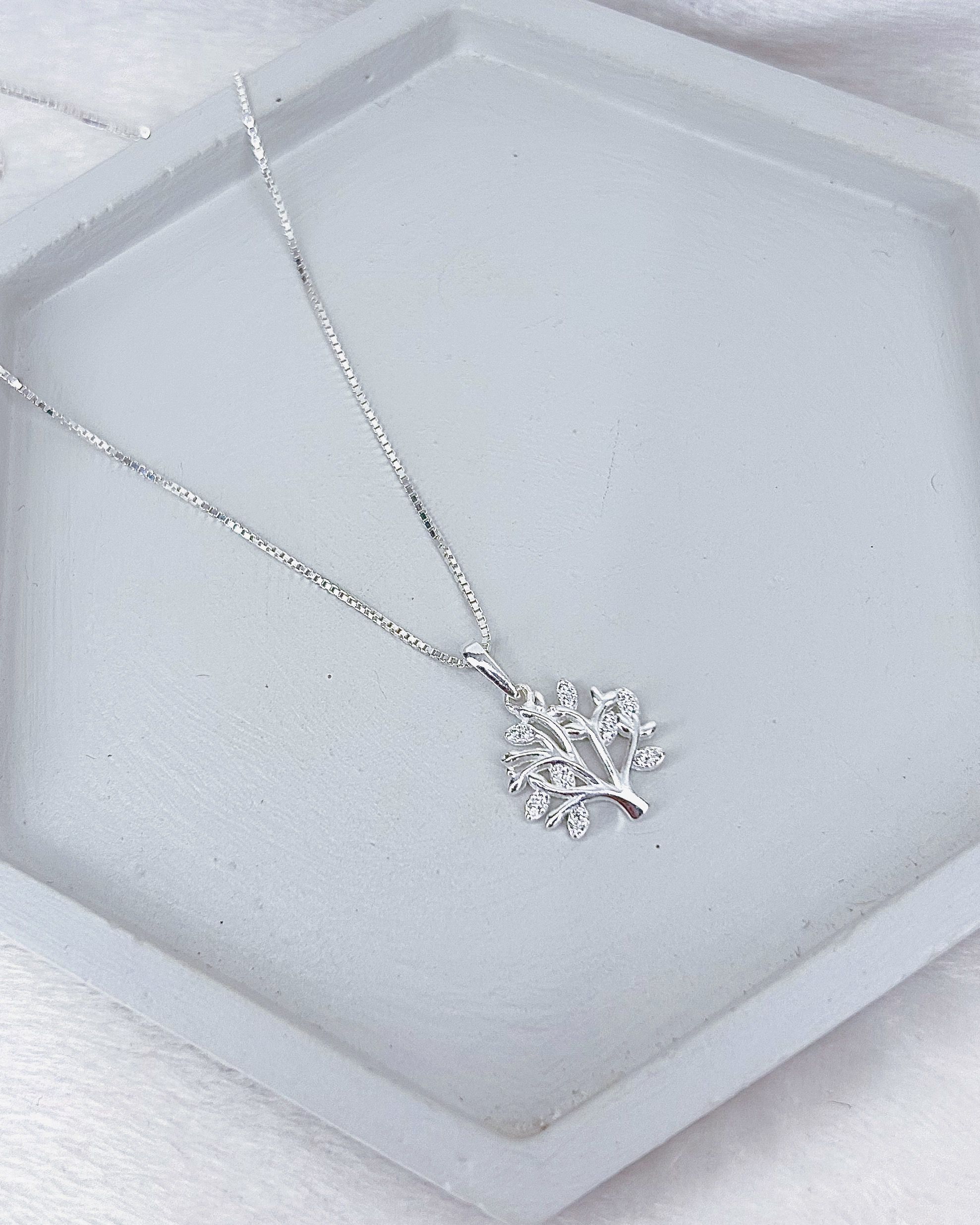 Colar de Prata Árvore da Vida Cravejado 1,4cm