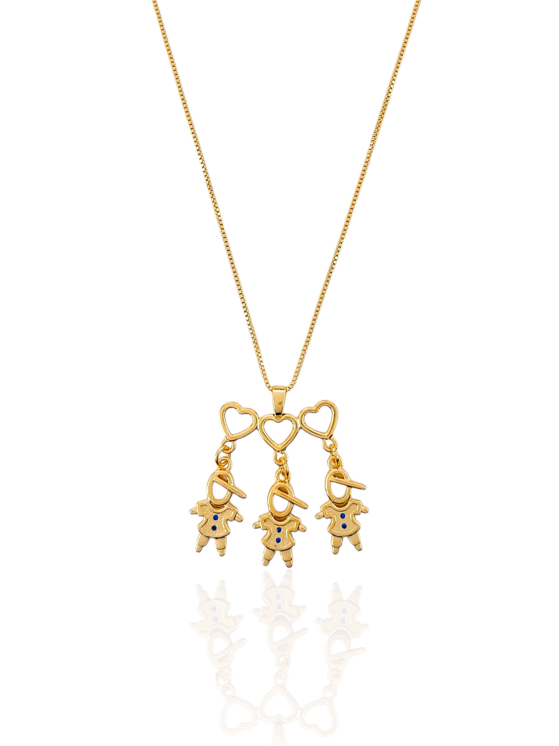 Colar Filhos ( Três Meninos) Veneziana 45cm - Banho de Ouro 18k