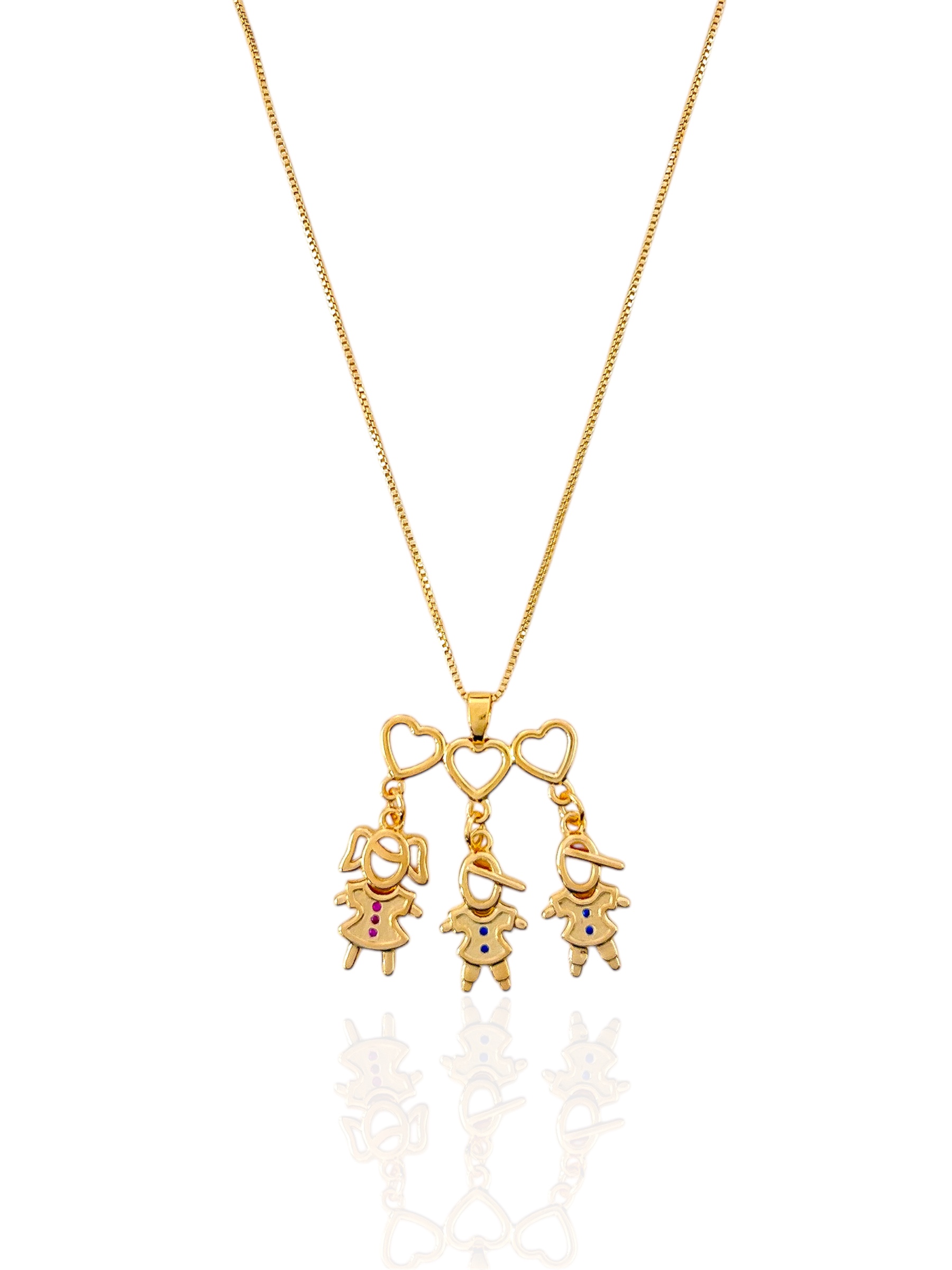 Colar Filhos (Uma Menina e Dois Meninos) Veneziana 45cm - Banho de Ouro 18k