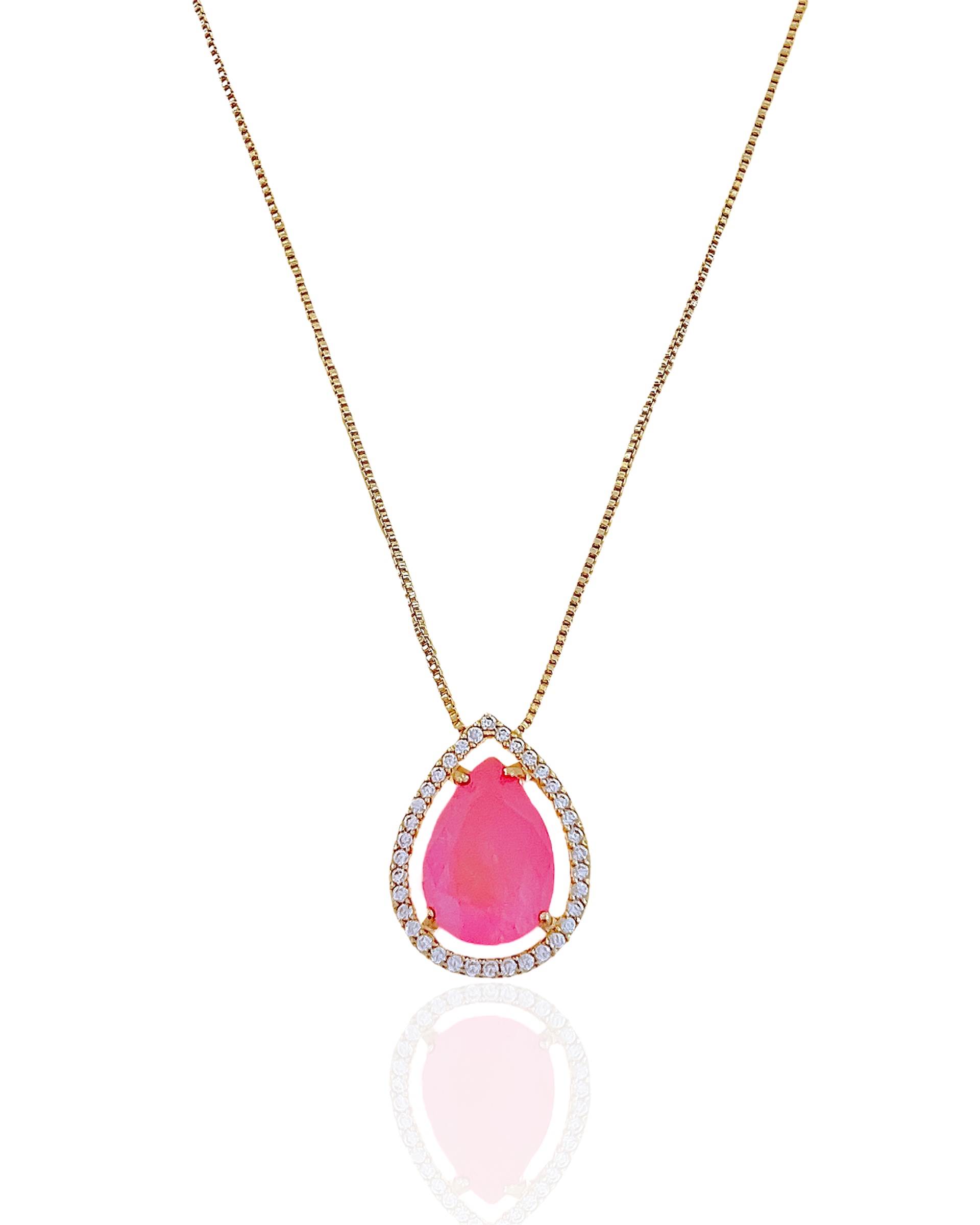 Comprimento da Corrente: 45cm + 4cm de Extensor Espessura da Corrente: 1mm Medida do Pingente: 2cm Fecho: Lagosta Material: Metal com Banho de Ouro 18k e Zircônia Cor: Dourado e Zircônia Rosa e cristal