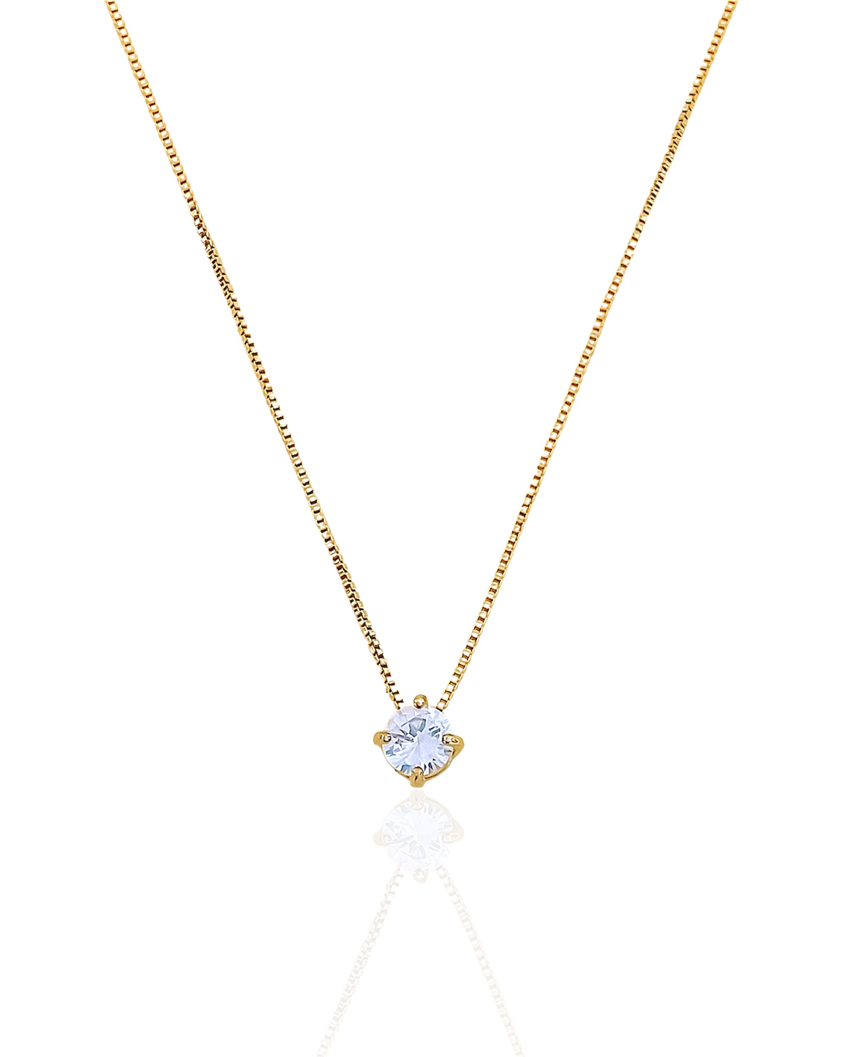 Comprimento da Corrente: 45cm Espessura da Corrente: 1mm Medida do Pingente: 6mm Fecho: Lagosta Material: Metal com Banho de Ouro 18k e Zircônia Cor: Dourado e Zircônia Cristal