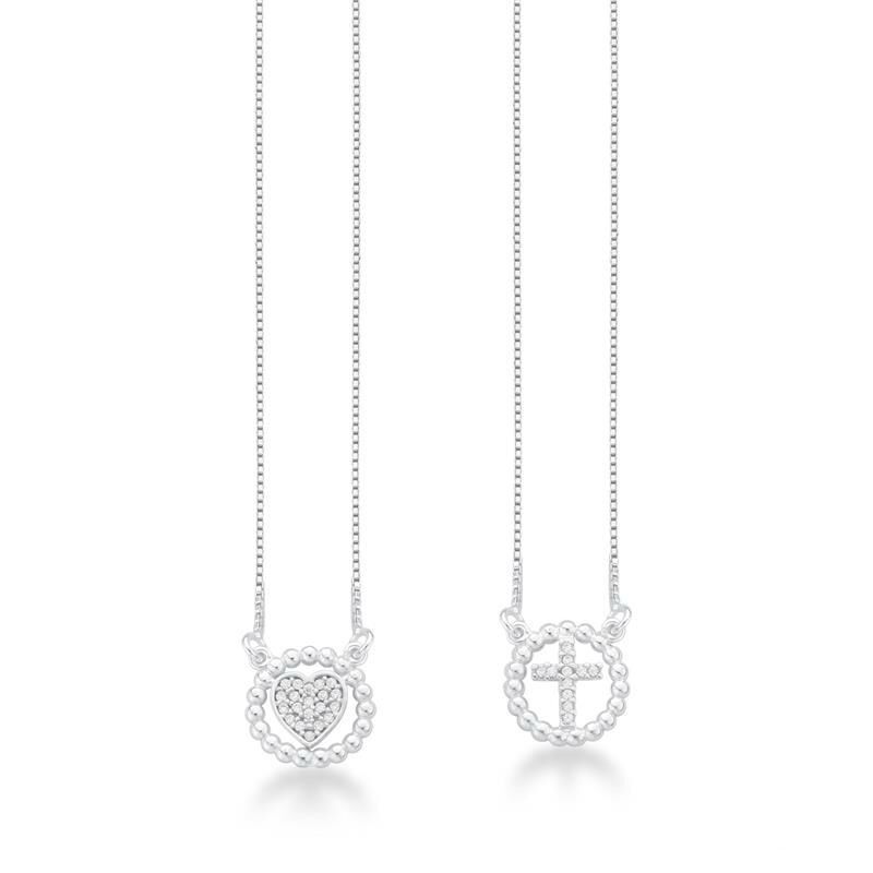 Escapulário Coração e Cruz Cravejada 60cm - Prata 925