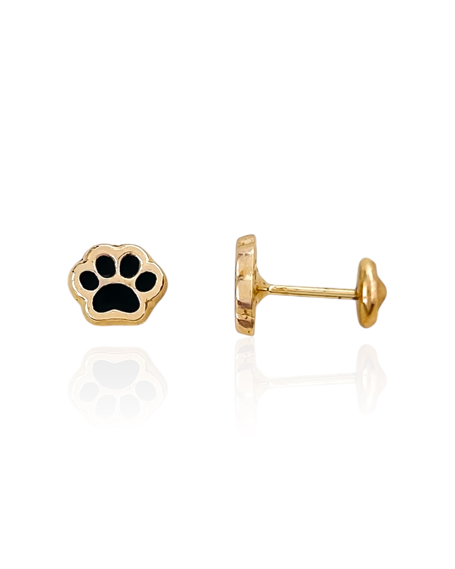 Brinco Infantil Patinha Resina Preta - Banho de Ouro 18k