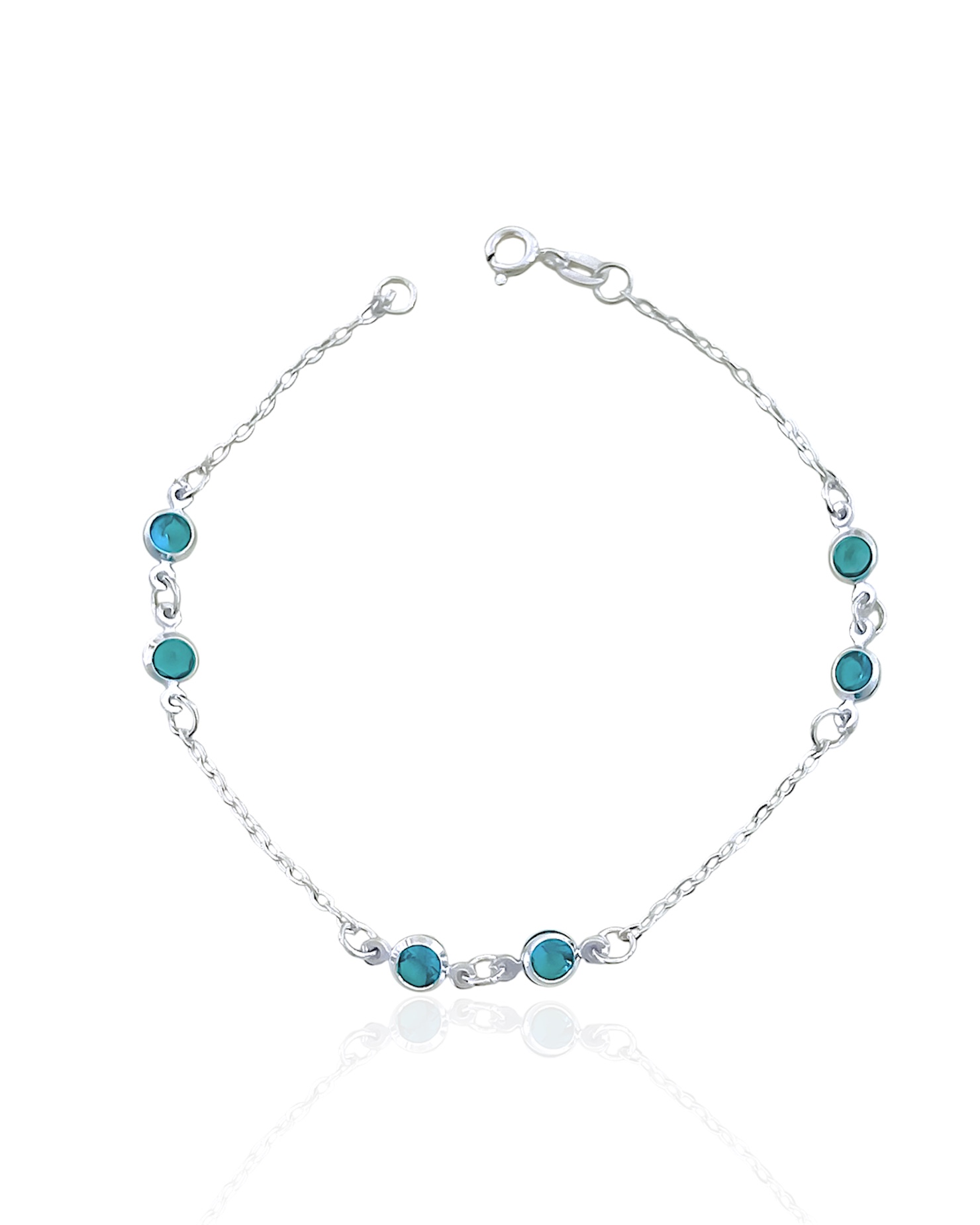 Comprimento da Pulseira: 19cm Espessura da Corrente: 1mm Medida Pingente: 5mm Fecho: Boia Material: Prata 925 e Zircônia Cor: Prata e Zircônia Verde Água