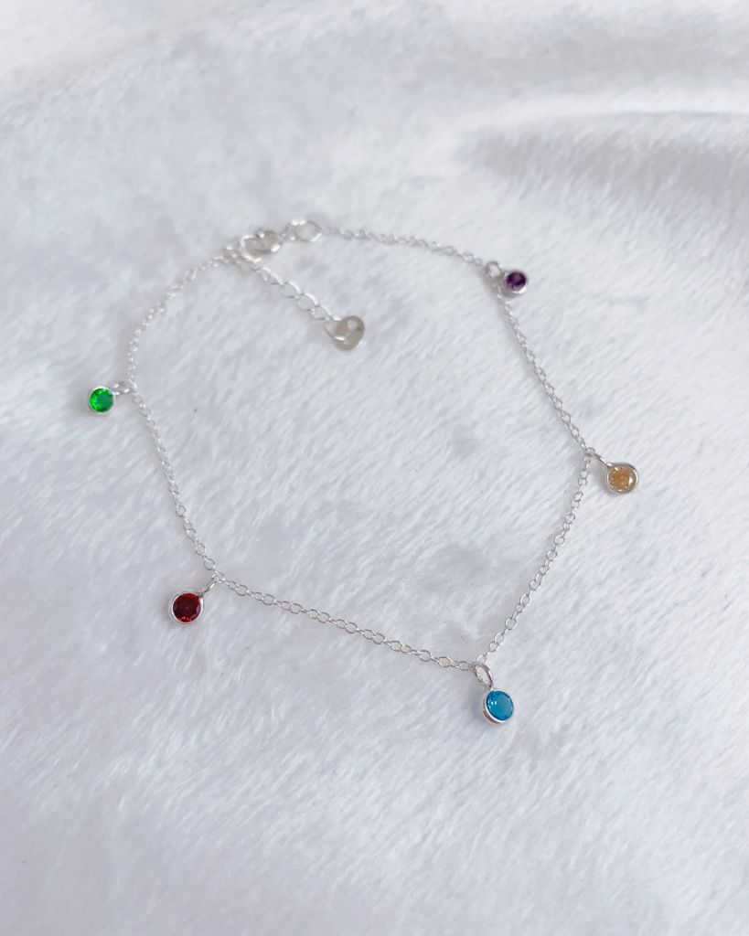 Pulseira de Prata 5 Zircônias Colors 22,5cm