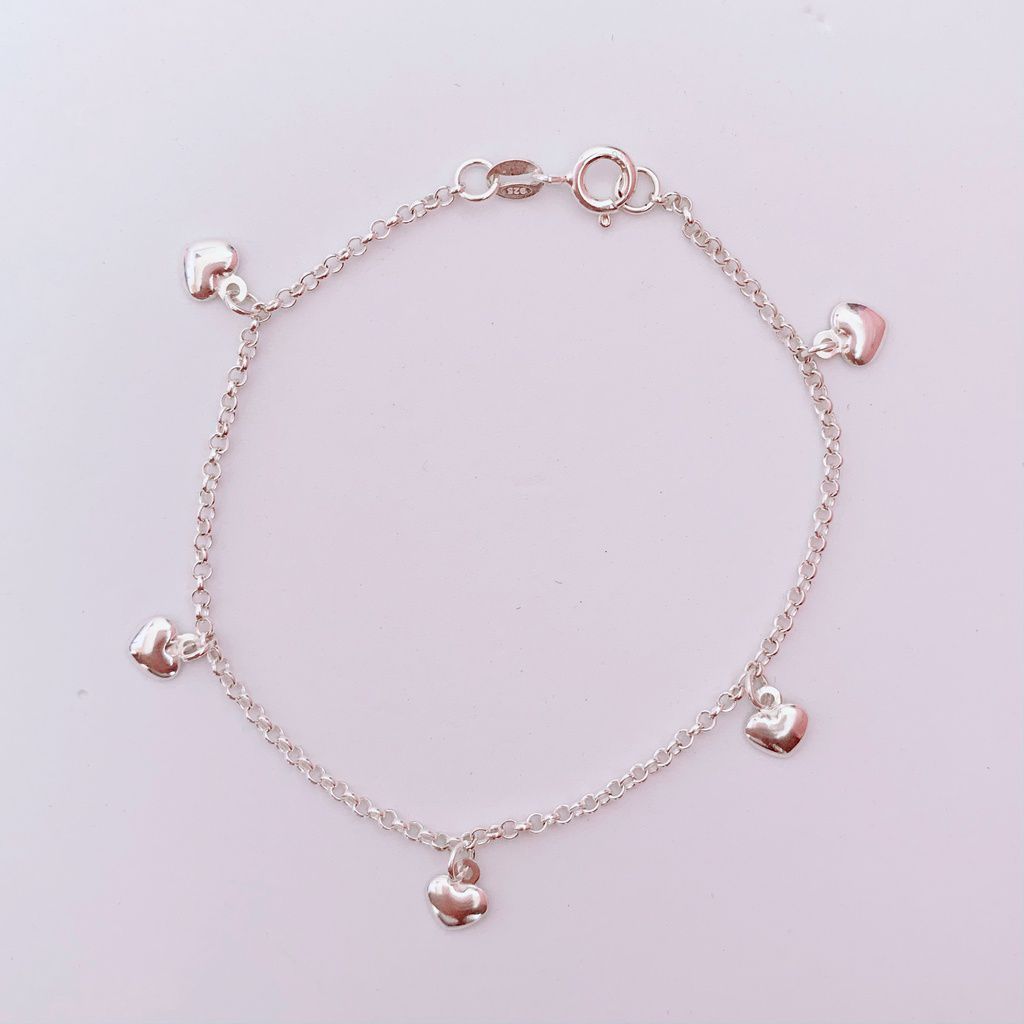 Pulseira c/ 5 Pingentes de Coração 19cm - Prata 925