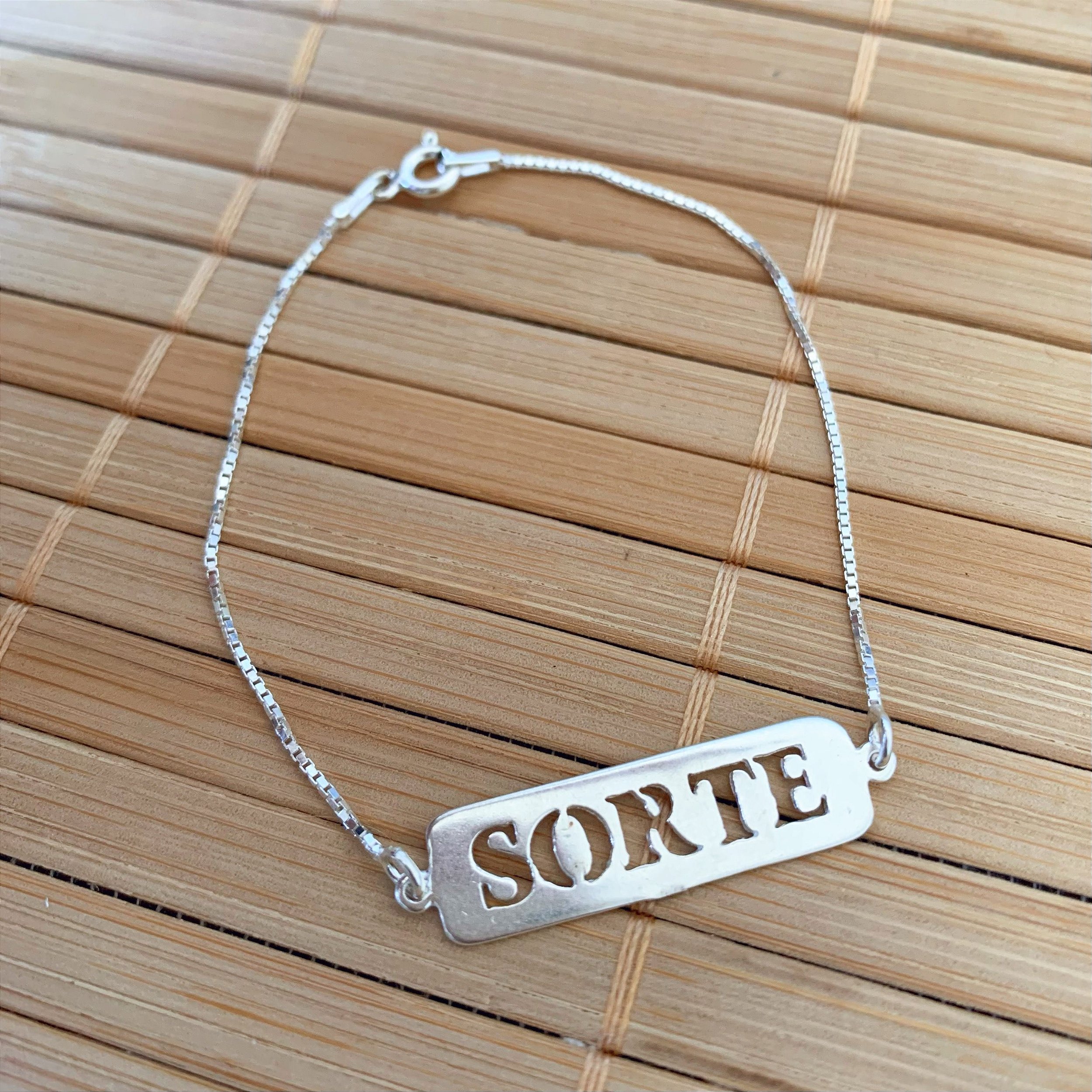 Pulseira de Prata Plaquinha Sorte
