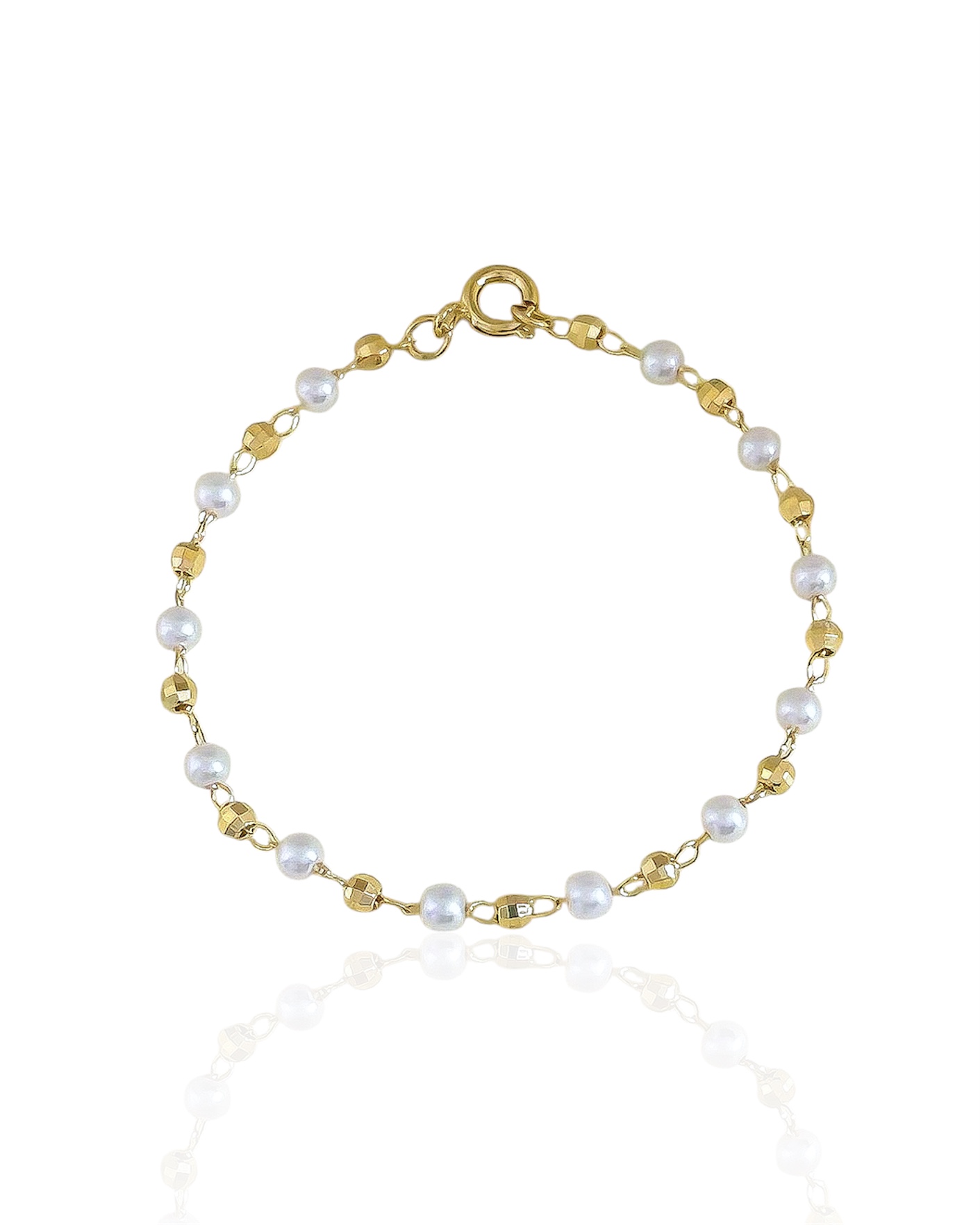 Comprimento da Pulseira: 15cm Material: Metal com Banho de Ouro 18k e Pérola Sintética Cor: Dourado