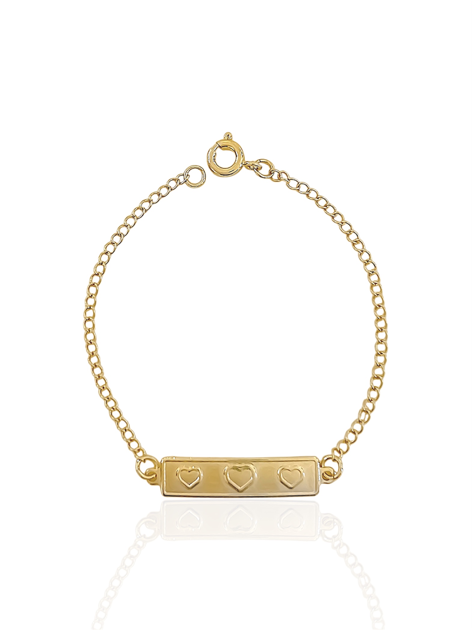 Comprimento da Pulseira: 15cm Medida Plaquinha: 2,4cm x 0,6cm Material: Metal com Banho de Ouro 18k Cor: Dourado