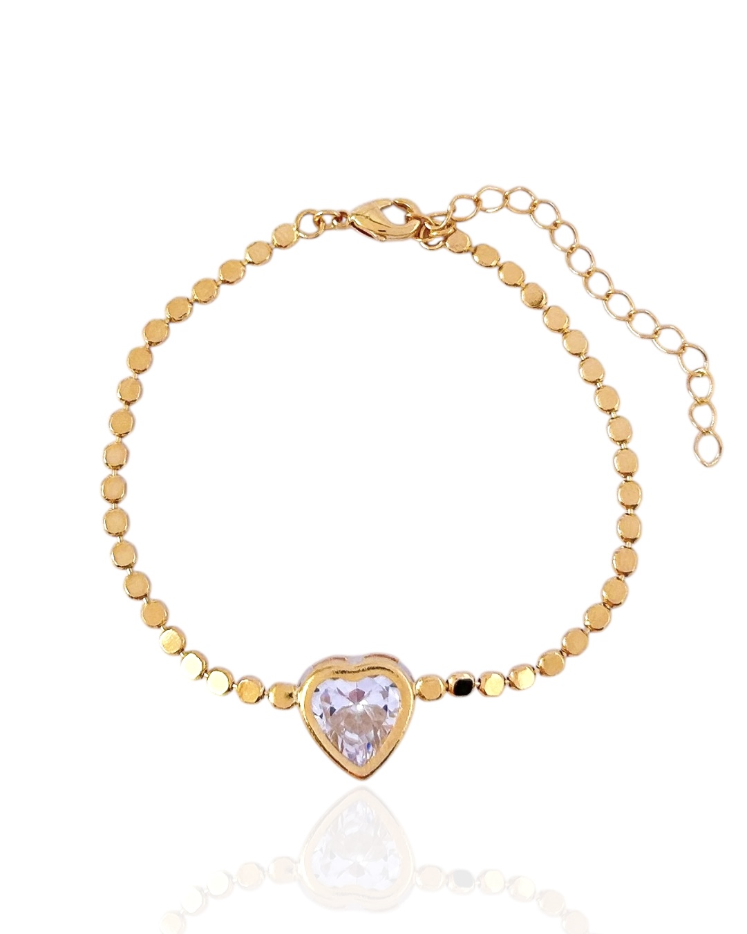 Pulseira Medalhas com Coração Zircônia 16cm - Banho de Ouro 18k
