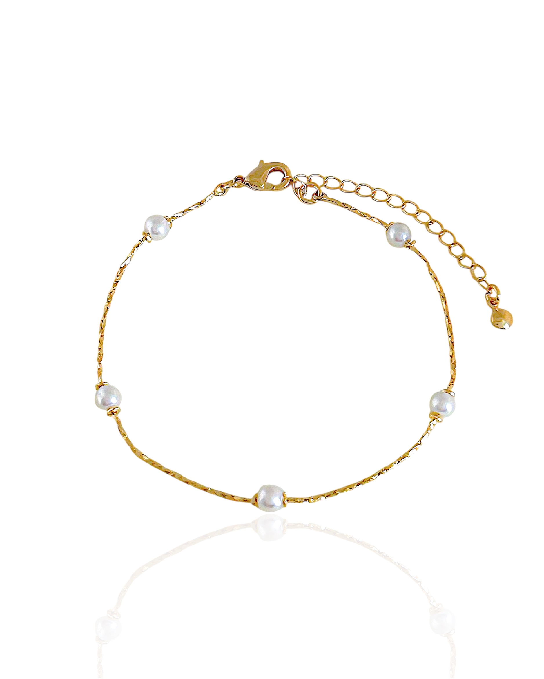 Comprimento da Pulseira: 18cm + 5cm de Extensor Espessura: 1mm Material: Metal com Banho de Ouro 18k e Pérola Sintética Cor: Dourado *Medidas aproximadas, podendo haver pequenas variações!
