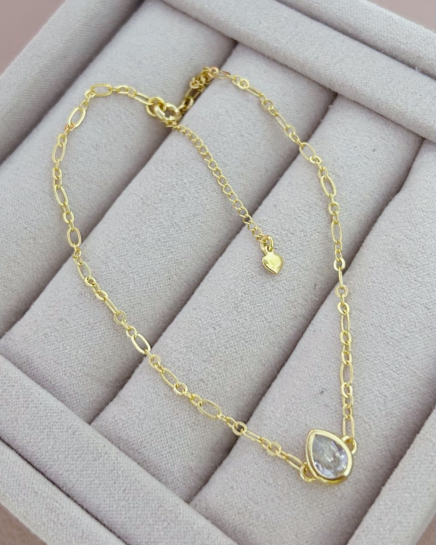 Tornozeleira Gota Zircônia 24cm + 5cm de extensor - Banho de Ouro 18k