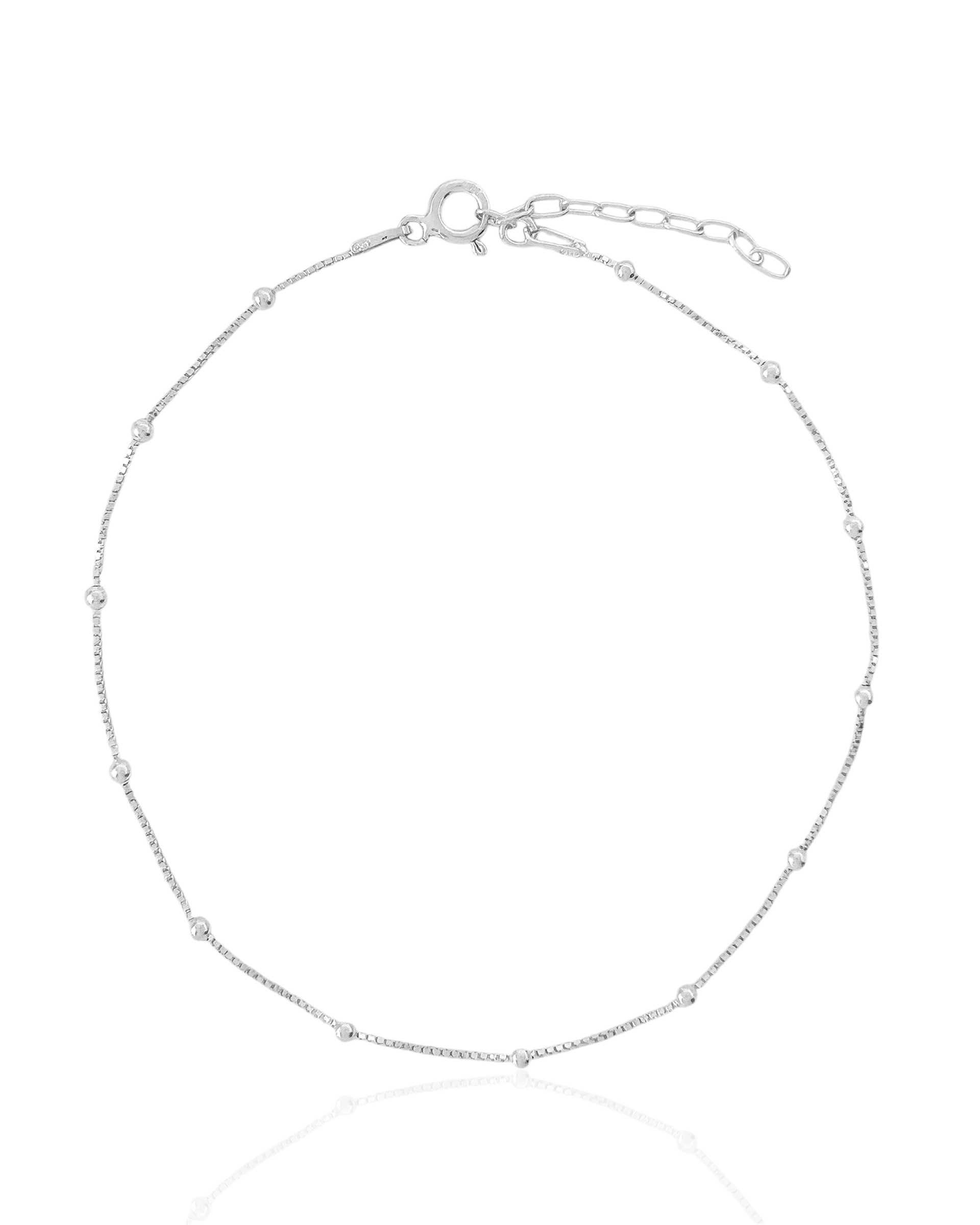 Tornozeleira em Prata 925 Corrente Veneziana com Bolinhas, Fecho Mola.